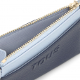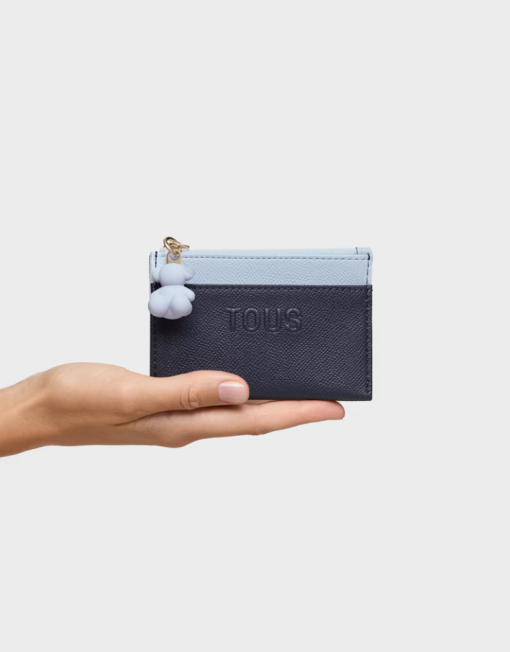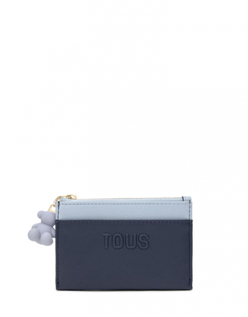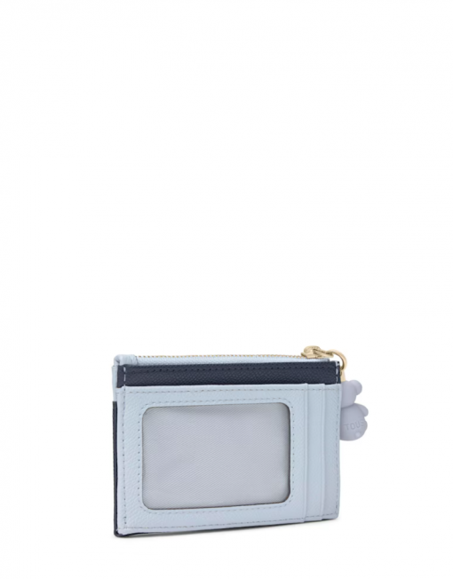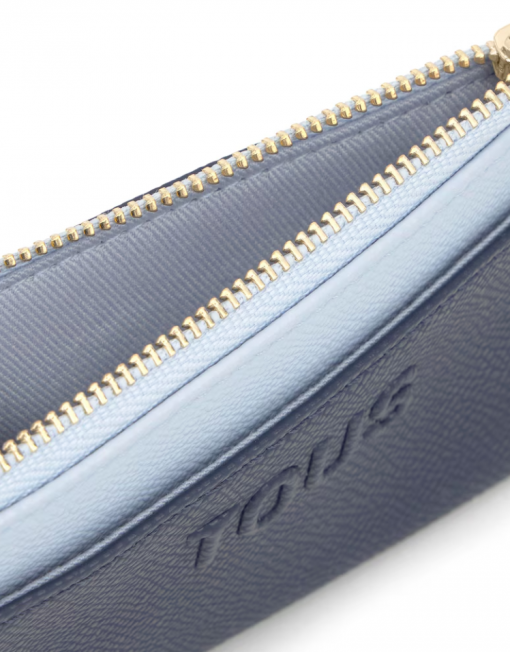 Monedero tarjetero TOUS Audree Saffiano de poliuretano en color azul marino. Compartimento especial para monedas con cierre de cremallera. En la parte trasera cuanta con tres ranuras para tarjetas, una de ellas transparente. Medidas (alto x ancho x fondo): 8 x 11,5 x 2 cm.