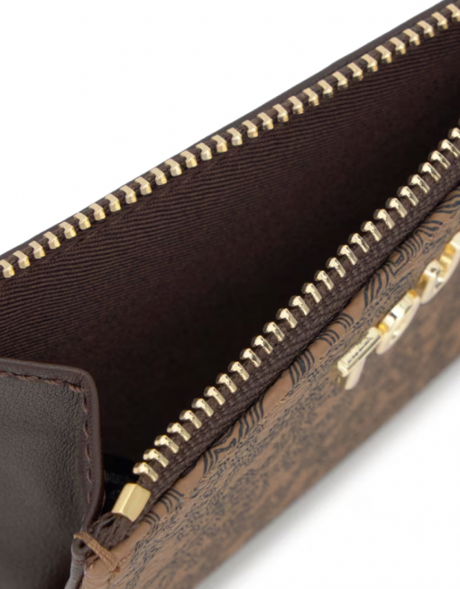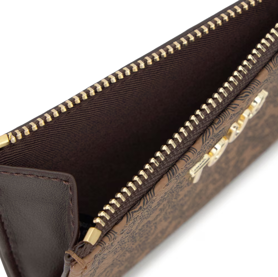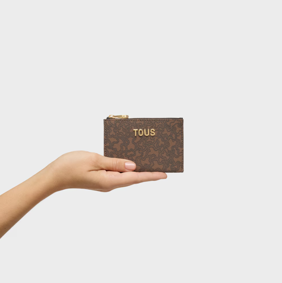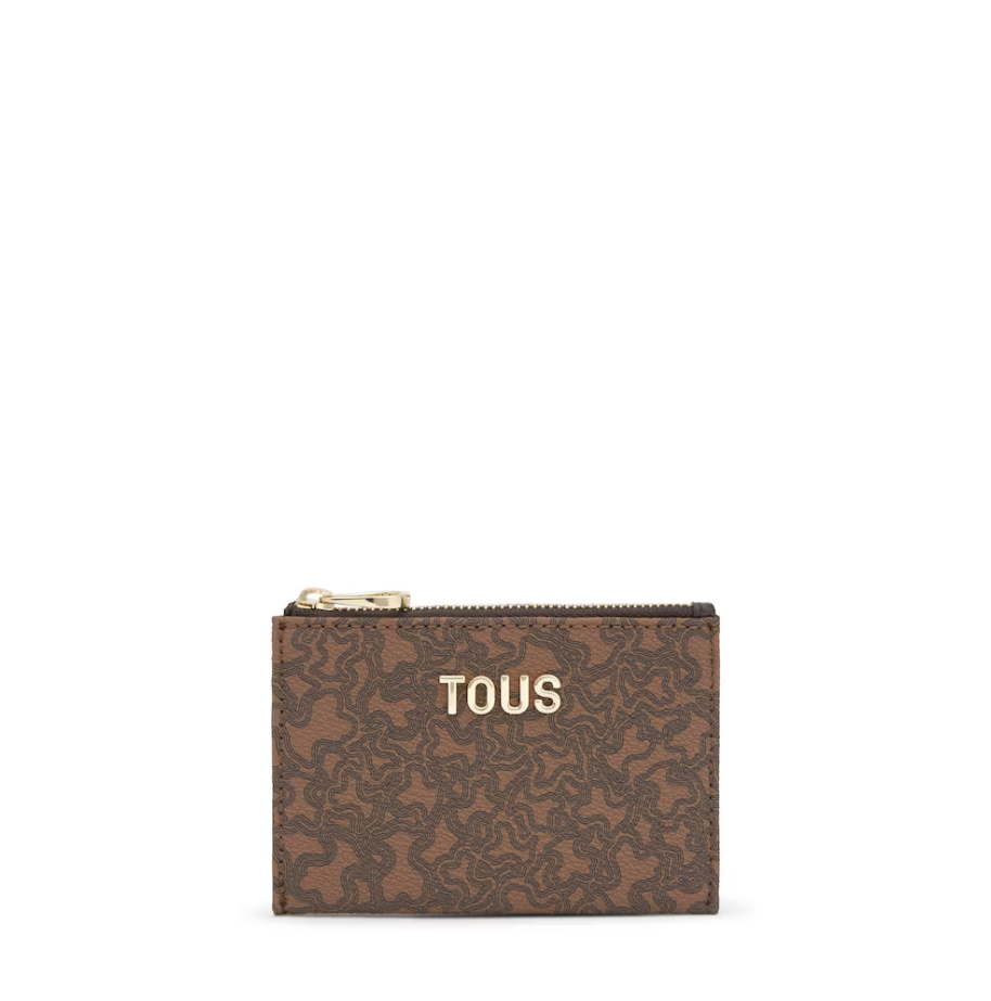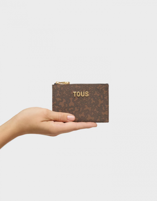 Monedero tarjetero Kaos Mini Lines de lona con detalles de poliuretano en color marrón. Compartimento especial para monedas con cierre de cremallera. En la parte trasera cuenta con tres ranuras para tarjetas, una de ellas transparente. Medidas (alto x ancho x fondo):