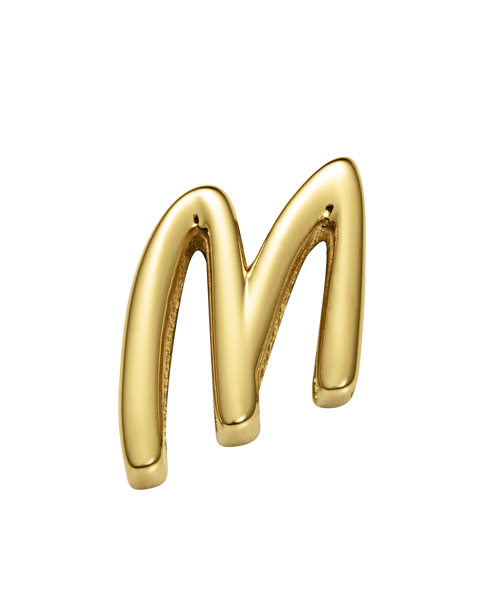 Motivo letra M de acero IP dorado para montar en pulsera personalizable