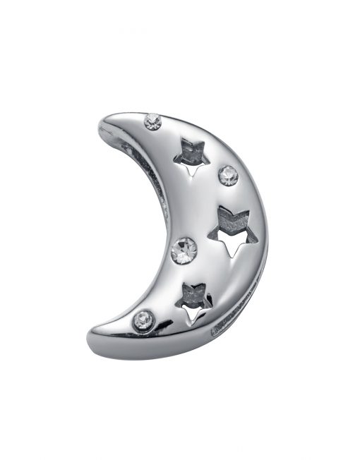 Motivo Viceroy de acero en forma de luna con estrellas y circonitas para montar en pulsera personalizable.