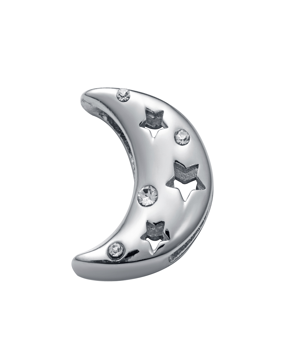 Motivo Viceroy de acero en forma de luna con estrellas y circonitas para montar en pulsera personalizable.