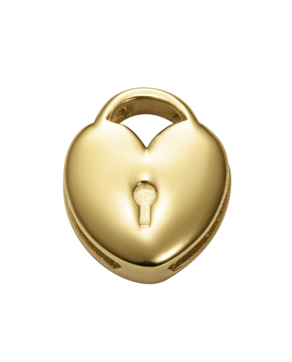Motivo Viceroy de acero IP dorado en forma de candado corazón para montar en pulsera personalizable.