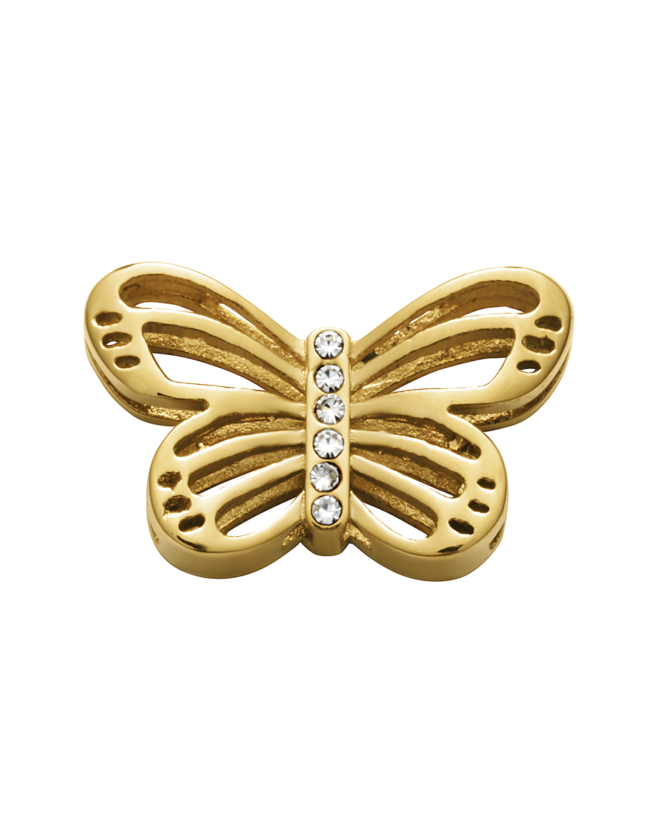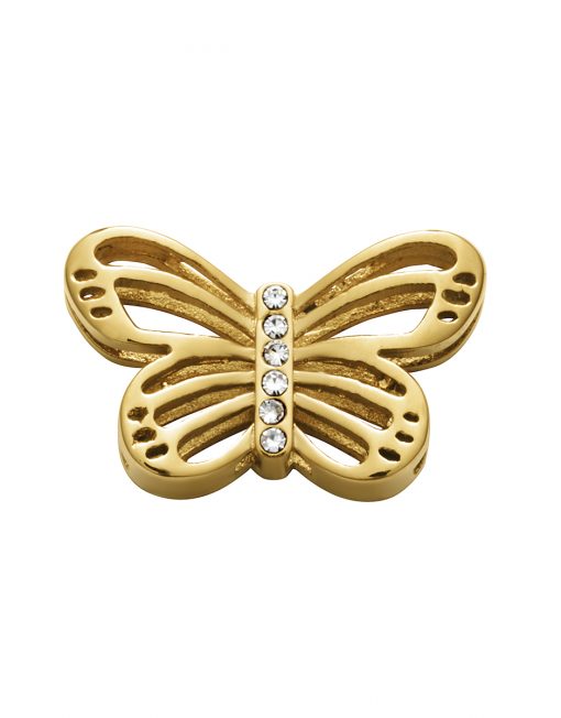 Motivo Viceroy de acero IP dorado en forma de mariposa con circonitas para montar en pulsera personalizable.