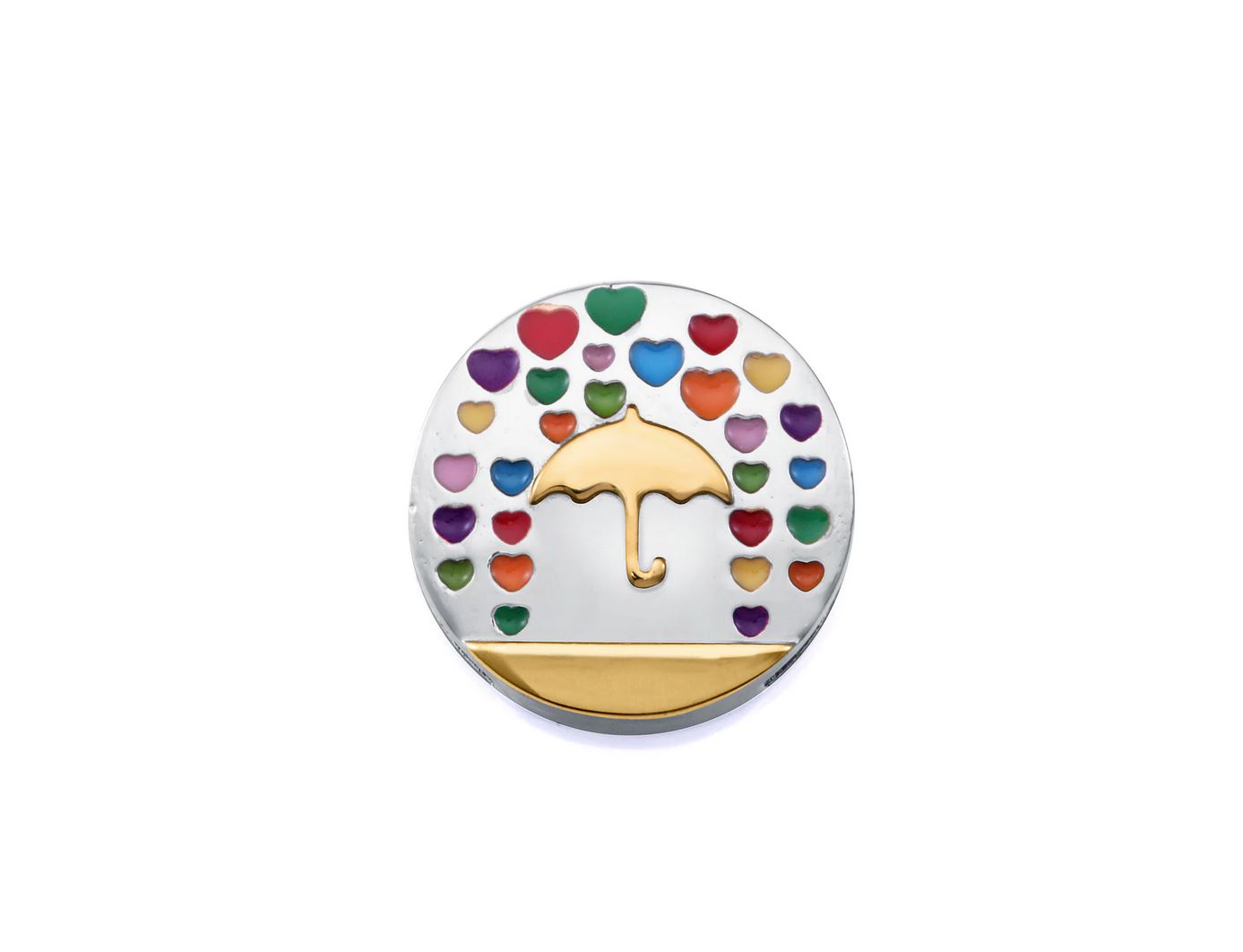 Original colgante de mujer, elaborado en acero con IP dorado, presenta un diseño encantador con corazones de esmaltes en colores vibrantes y un delicado paraguas. Los corazones multicolores aportan un toque alegre y juvenil, mientras que el paraguas añade un detalle único y elegante. Ideal para darle vida a cualquier conjunto, este colgante es perfecto para la mujer que busca una pieza llena de personalidad y estilo. Con su diseño creativo y moderno, este accesorio destaca por su encanto y versatilidad, convirtiéndose en el complemento perfecto para cualquier ocasión.