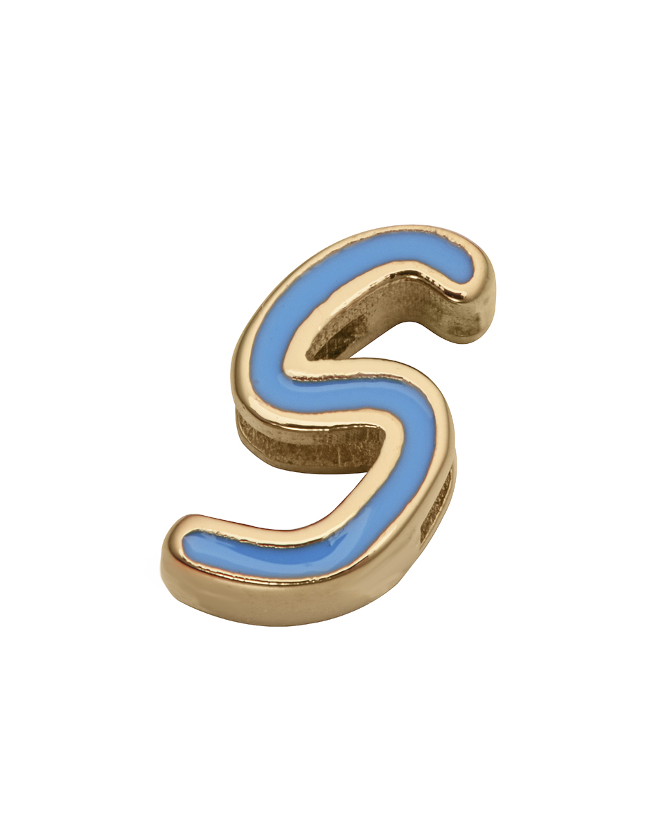 Motivo letra S en acero dorado y esmalte azul claro para montar en pulseras personalizables de niña Viceroy 1403P01010 y 1403P01012