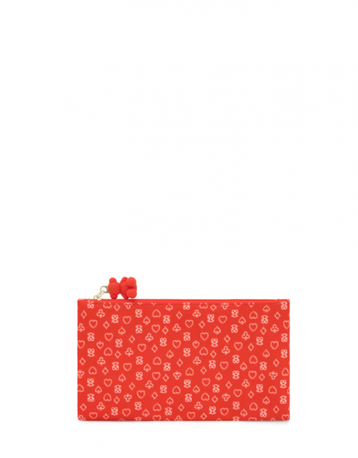 Neceser plano mediano TOUS Bear Anniversary en color rojo. Cierre con cremallera. Medidas: 12,5 x 22 x 0,5 cm