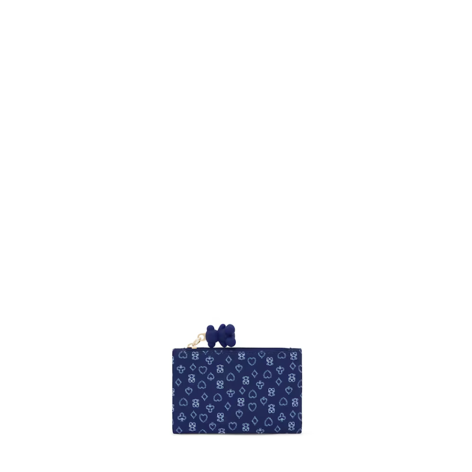 Neceser plano pequeño TOUS Bear Anniversary en color azul oscuro. Cierre con cremallera. Medidas: 8,2 x 13,3 x 0,5 cm.