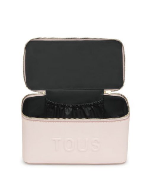 Neceser TOUS Brenda de poliuretano en color rosa claro. Cierre de cremallera. Bolsillo interior abierto. Medidas (alto x ancho x fondo): 13 x 26 x 14 cm.