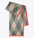Bufanda de mujer – pashmina con contorno monocromático, con flores y cuadros con estampado de rombos. Un accesorio único, con detalles intrincados para cada atuendo.