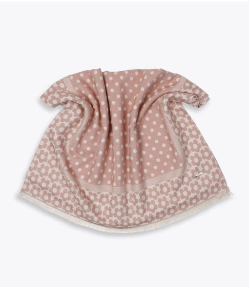 Pashmina de mujer, confeccionada en tejido. Tienen flecos y el diseño es de lunares y flores. Las pashminas son una valiosa adición al guardarropa de una mujer. Realzarán cualquier conjunto mientras te mantienen abrigado.