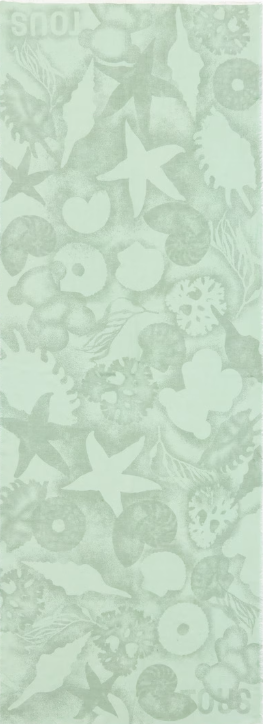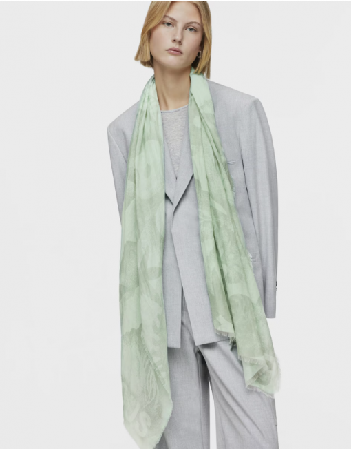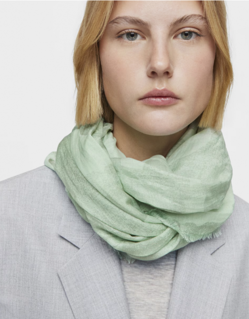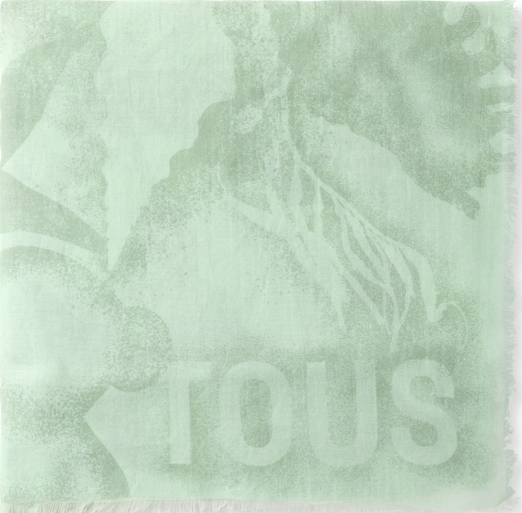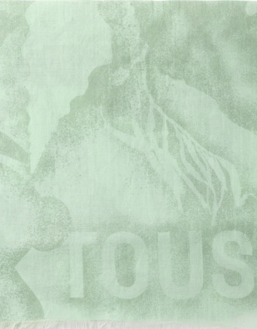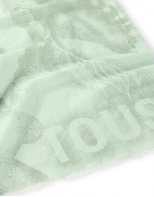 Foulard de algodón TOUS Alda en color gris piedra y menta. Composición: 72 % algodón, 28 % seda. Medidas: 190 x 70 cm.