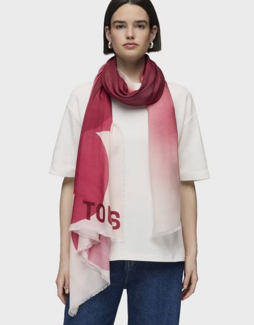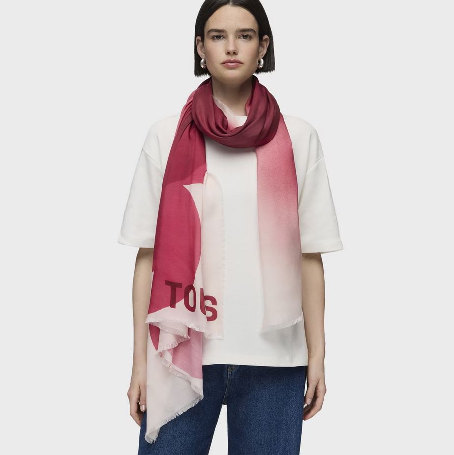 Foulard de viscosa y modal TOUS Blurry Flower en color fucsia. Composición: 50 % modal, 50 % viscosa. Medidas: 200 x 90 cm.