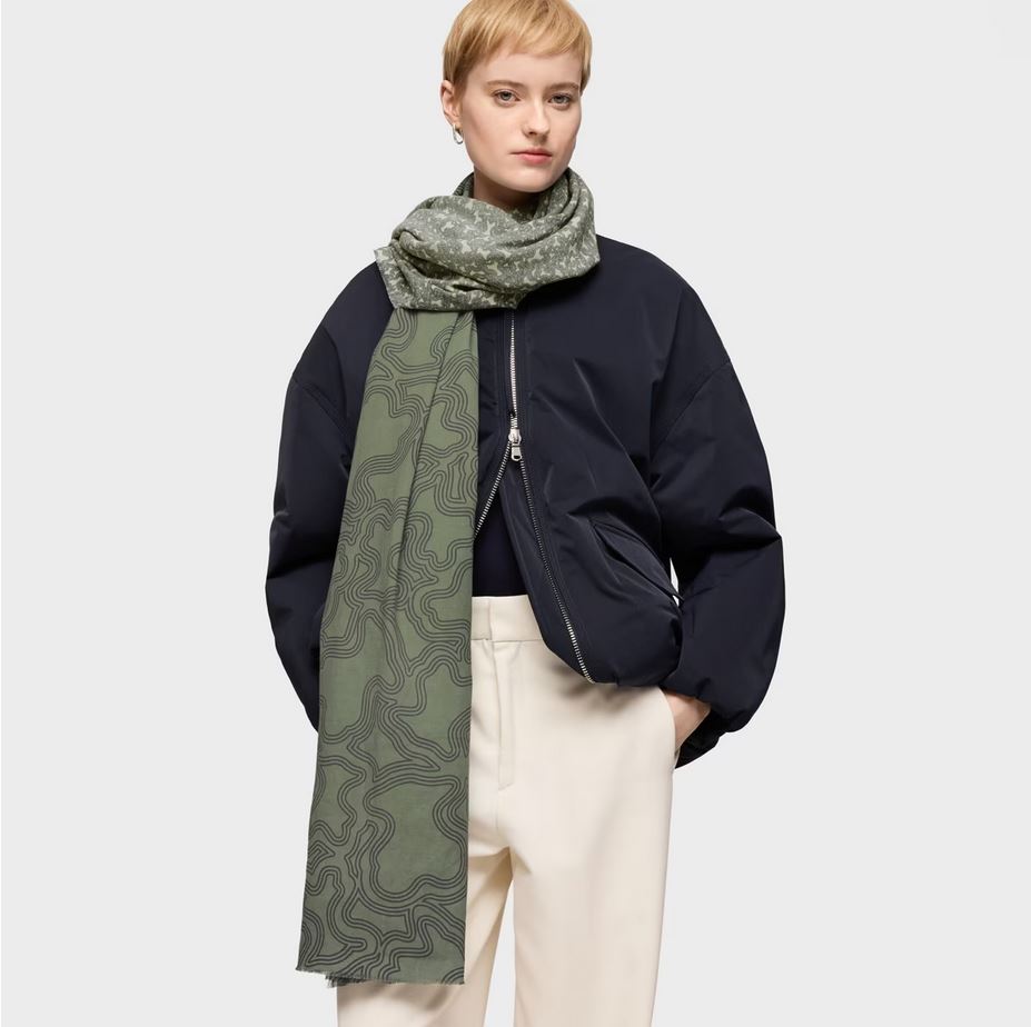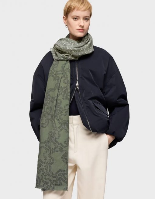 Foulard Kaos Mini Lines en color caqui. Medidas: 200 x 75 cm. Composición: 100 % algodón.