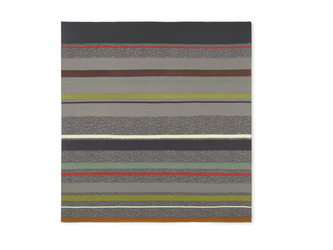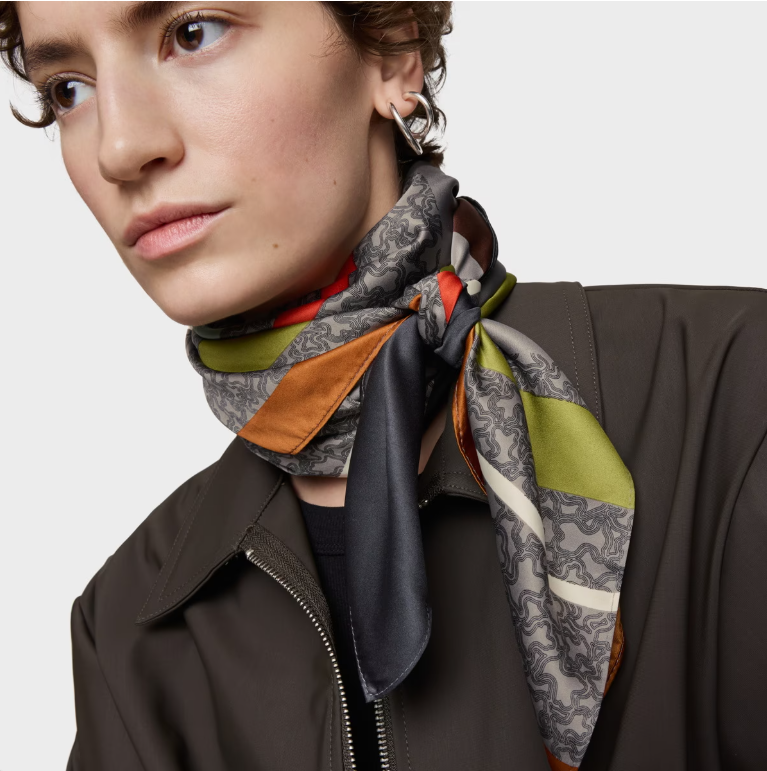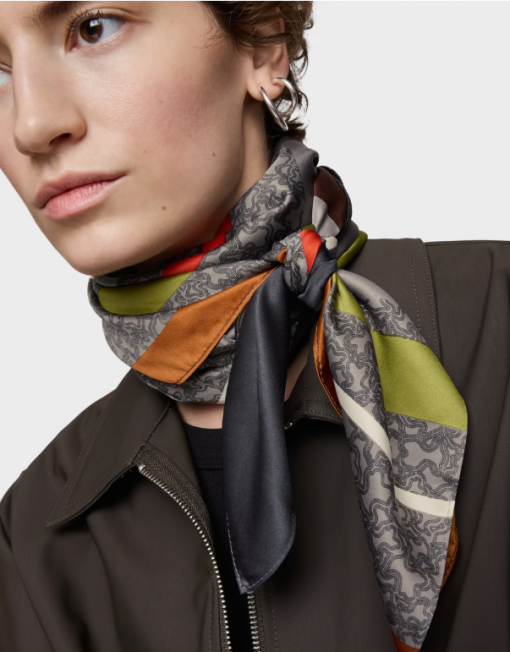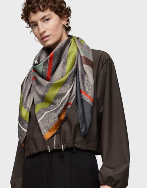 Pañuelo cuadrado Kaos Mini Lines en color gris. Medidas: 120 x 120 cm. Composición: 100 % poliéster.