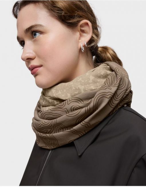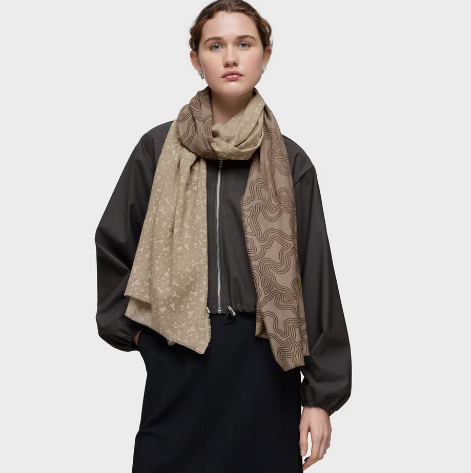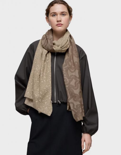 Foulard Kaos Mini Lines en color topo. Medidas: 200 x 75 cm. Composición: 100 % algodón.