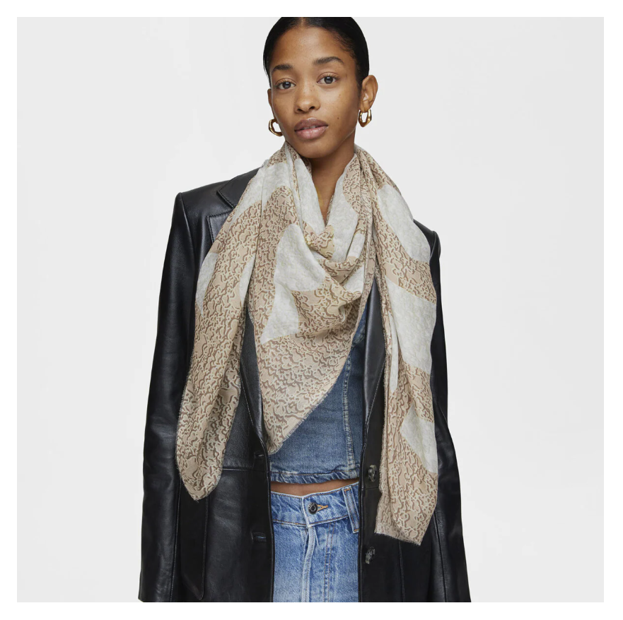 Pañuelo de modal Kaos Mini Evolution en color topo. Composición: 100% modal. Medidas: 120 x 120 cm.