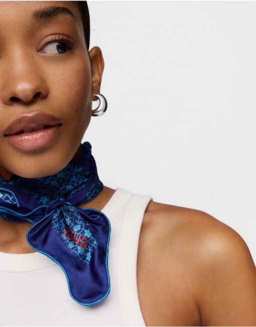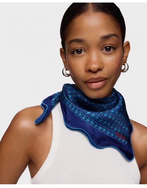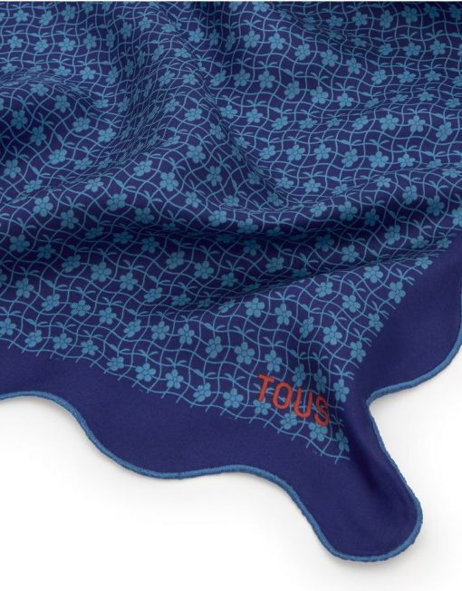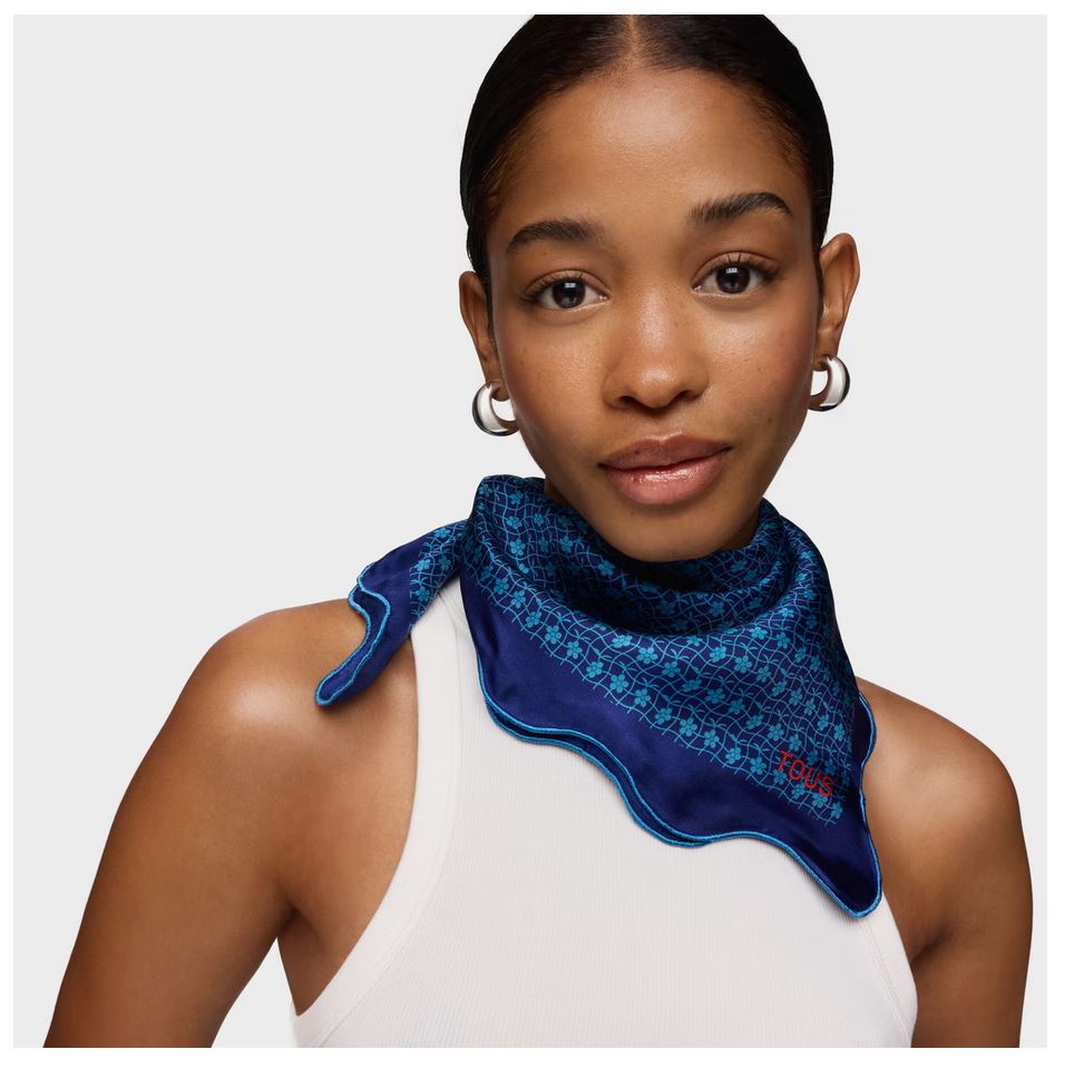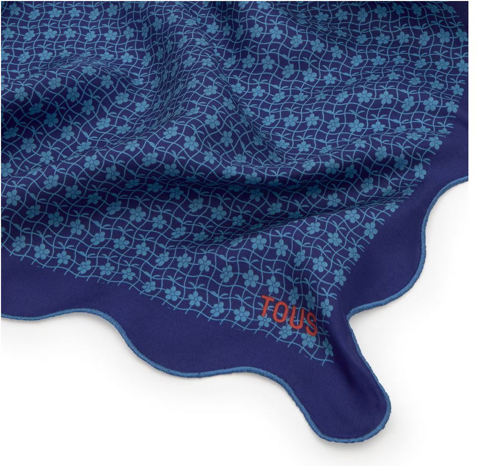 Pañuelo cuadrado azul oscuro Mini Daisy. Medidas: 60x 60 cm. Composición: 100 % seda.