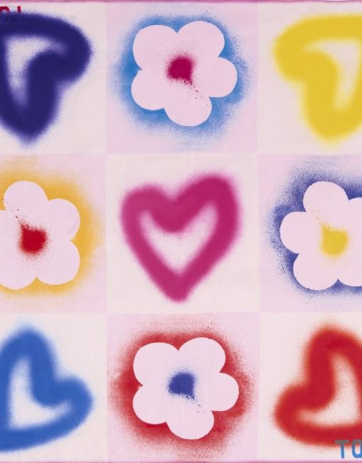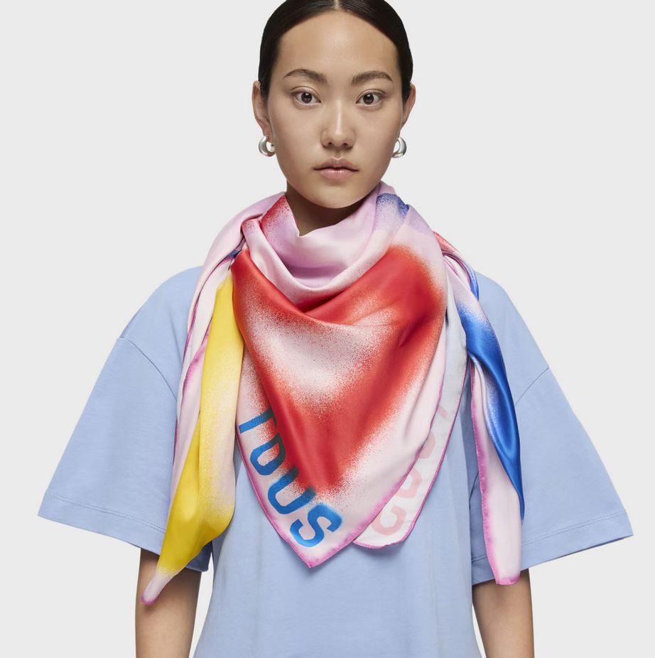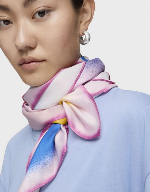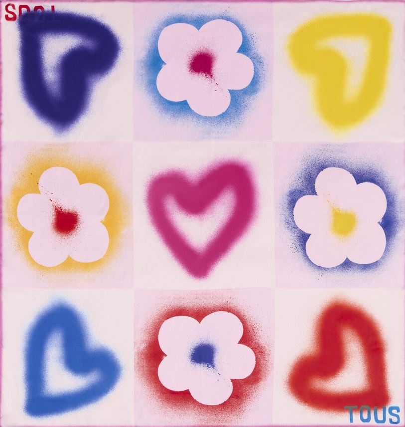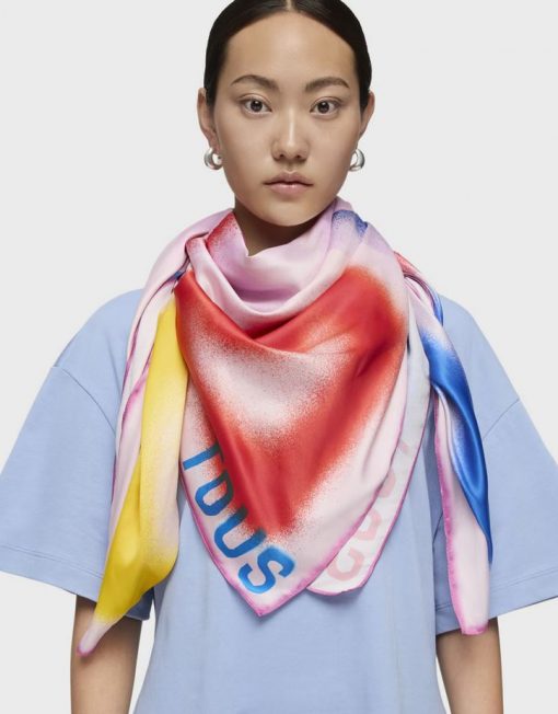 Pañuelo cuadrado de poliéster TOUS Motif Flower en color rosa palo. Composición: 100 % poliéster. Medidas: 120 x 120 cm.