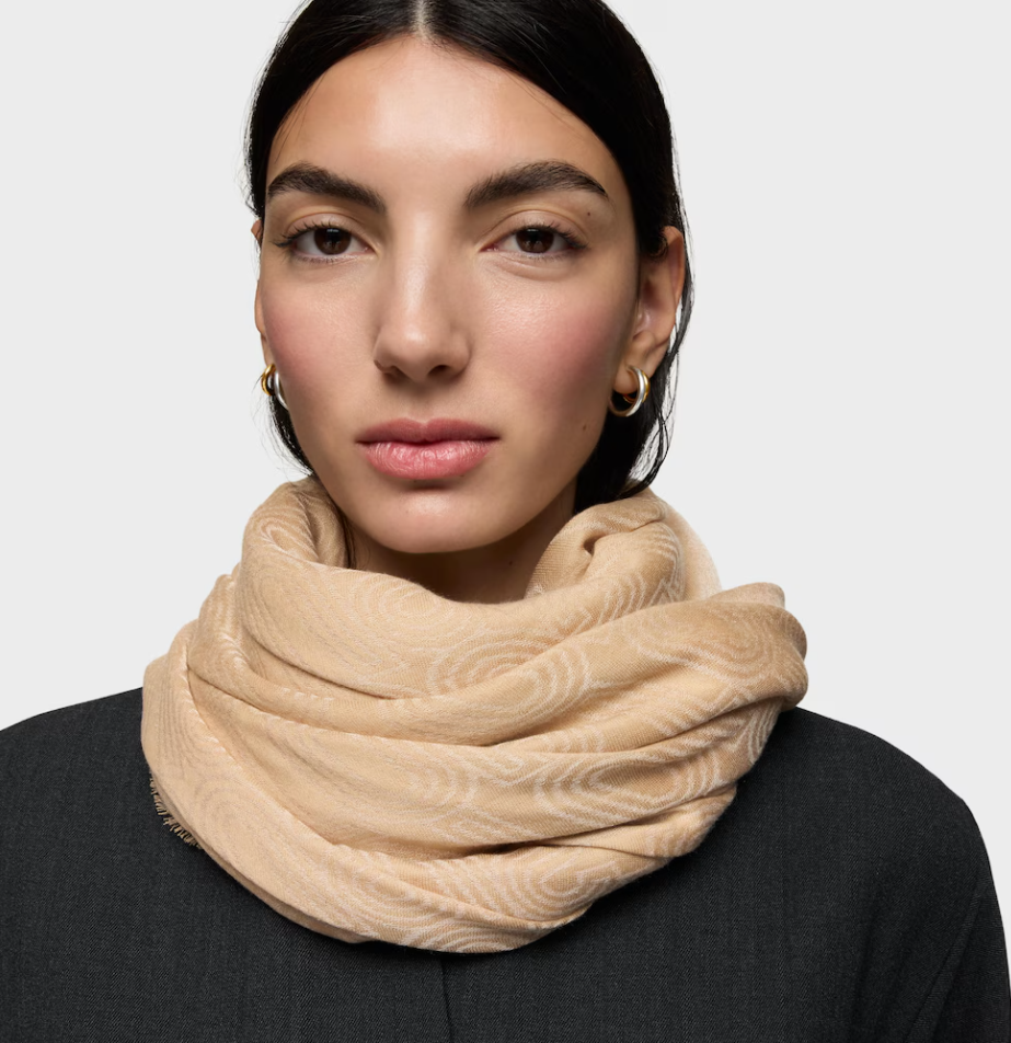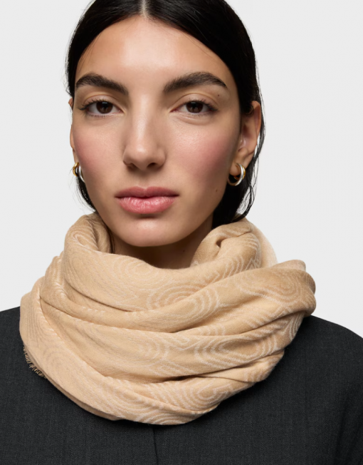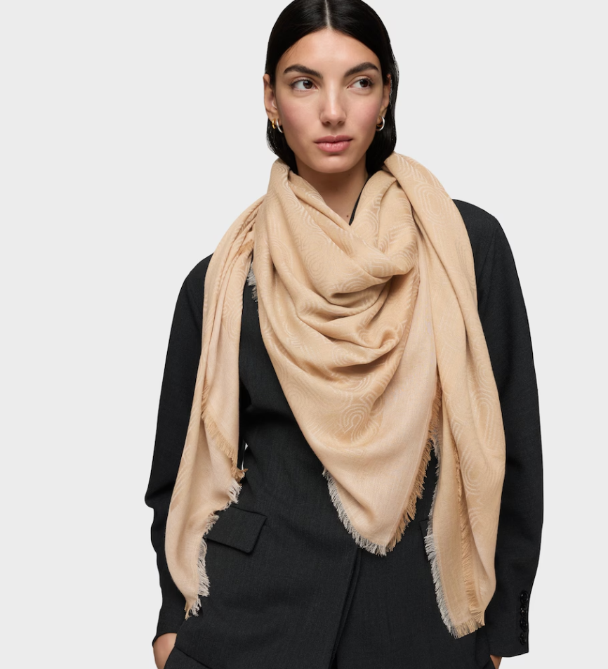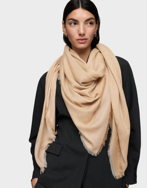 Pañuelo TOUS Silhouette Jacquard en color arena. De forma cuadrada. Medidas: 140×140 cm.