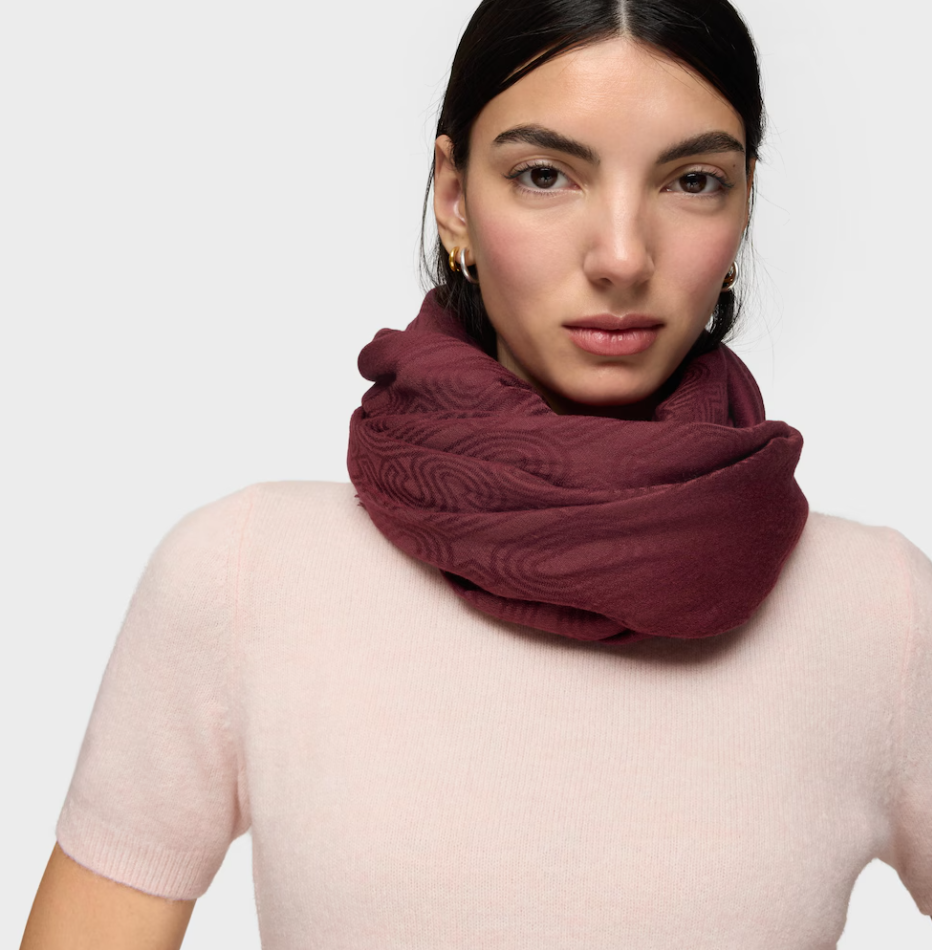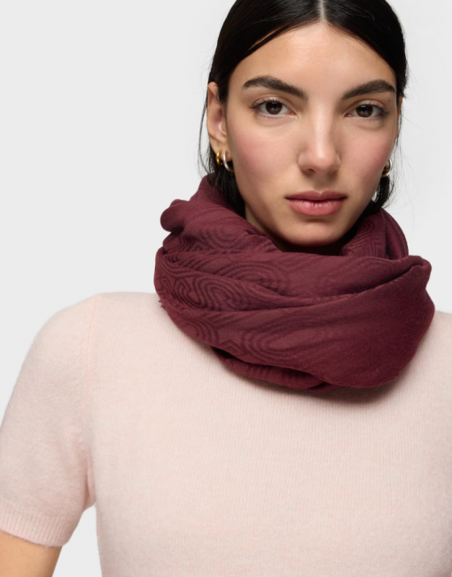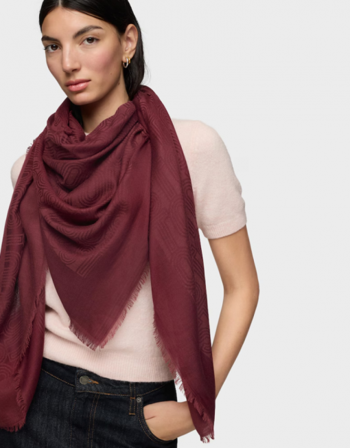 Pañuelo TOUS Silhouette Jacquard en color burdeos. De forma cuadrada. Medidas: 140×140 cm.