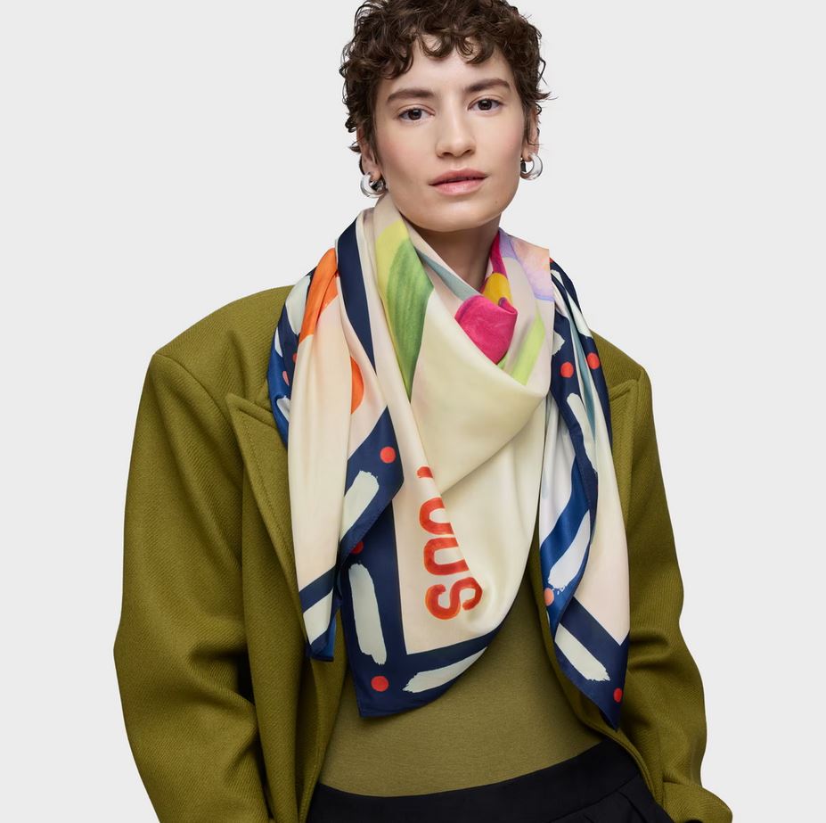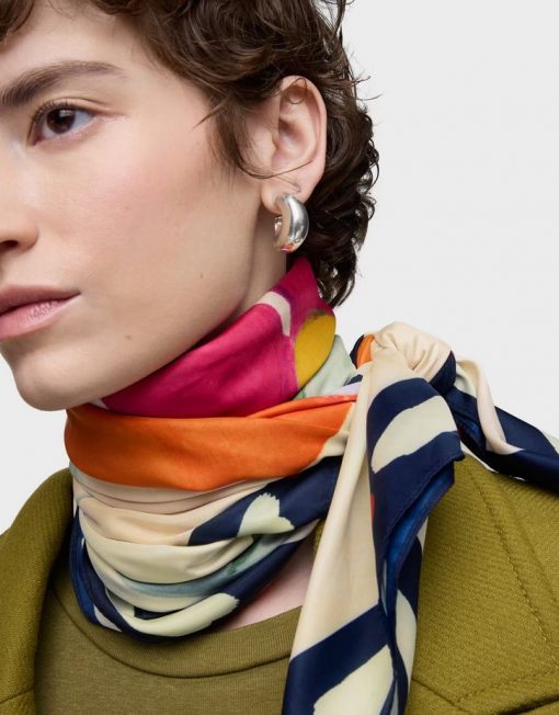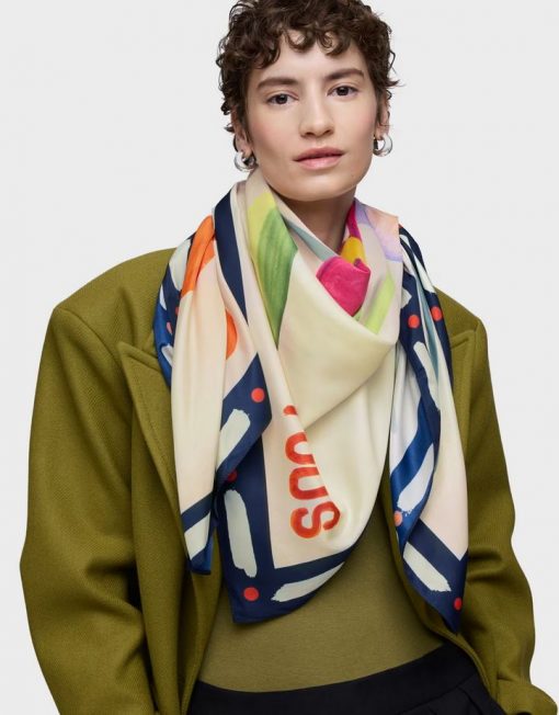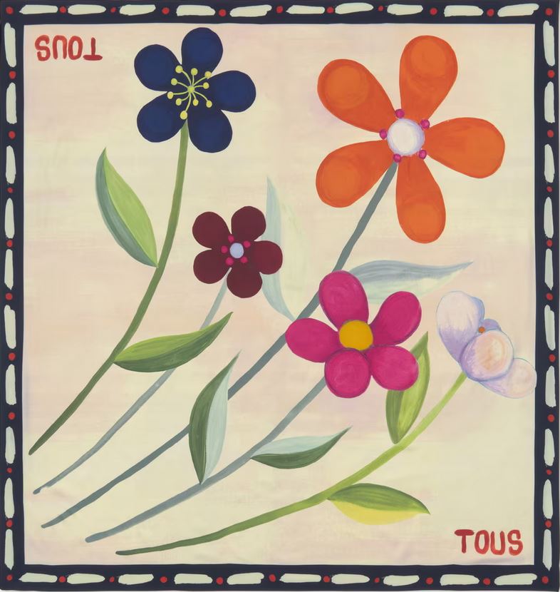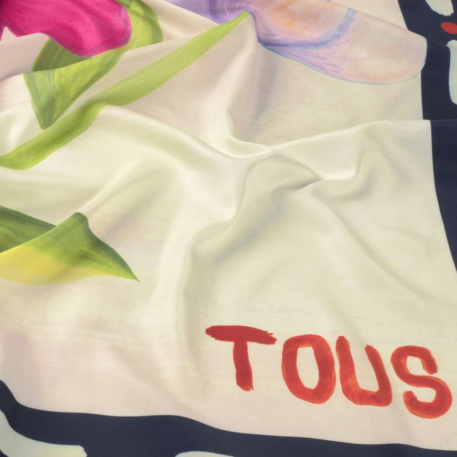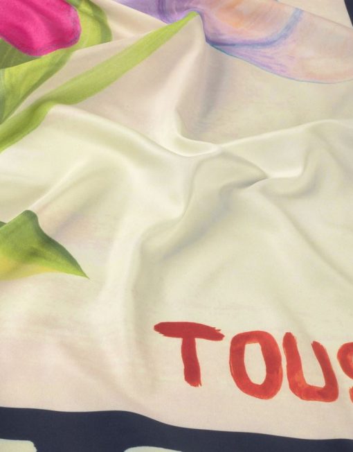 Pañuelo cuadrado TOUS Summer Daisies en color rosa claro. Medidas: 120 x 120 cm. Composición: 100 % poliéster.