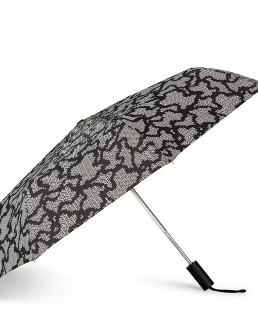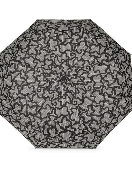 Paraguas plegable TOUS Kaos Pix de poliéster con estampado en color negro. Incluye una funda para guardar y proteger el paraguas.