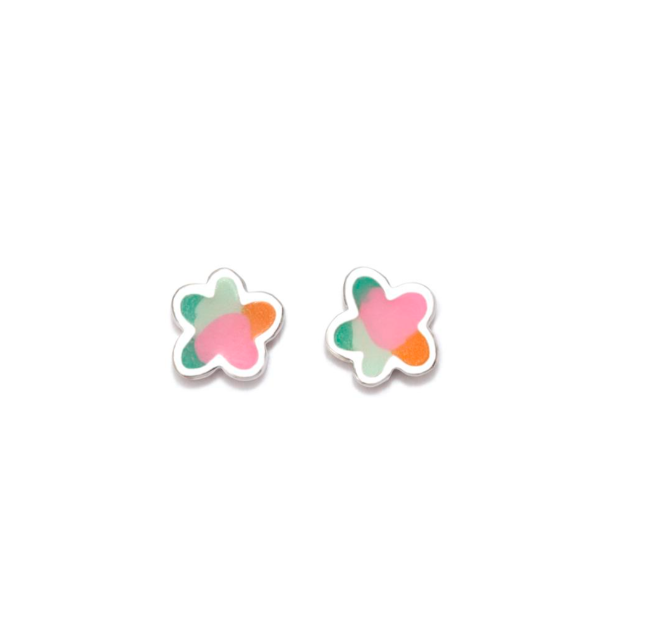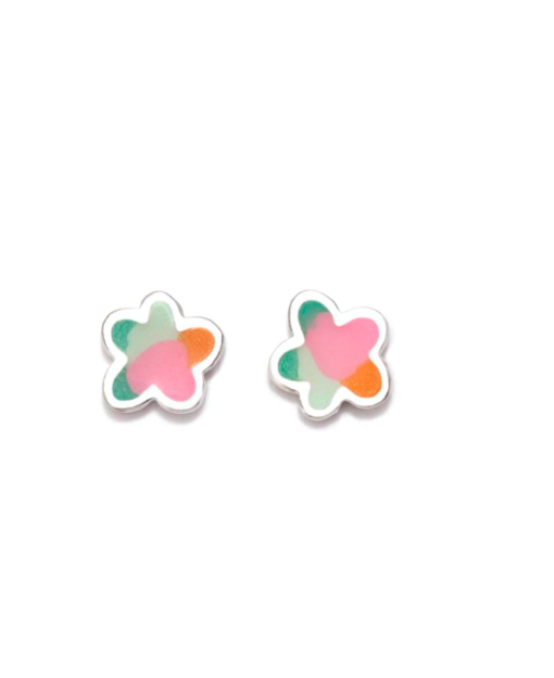 Pendientes de plata de ley y baño de rodio, con esmalte. Cierre de presión