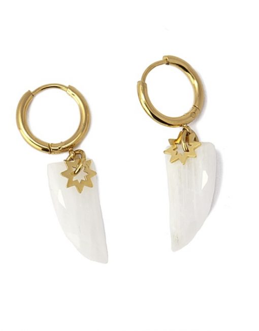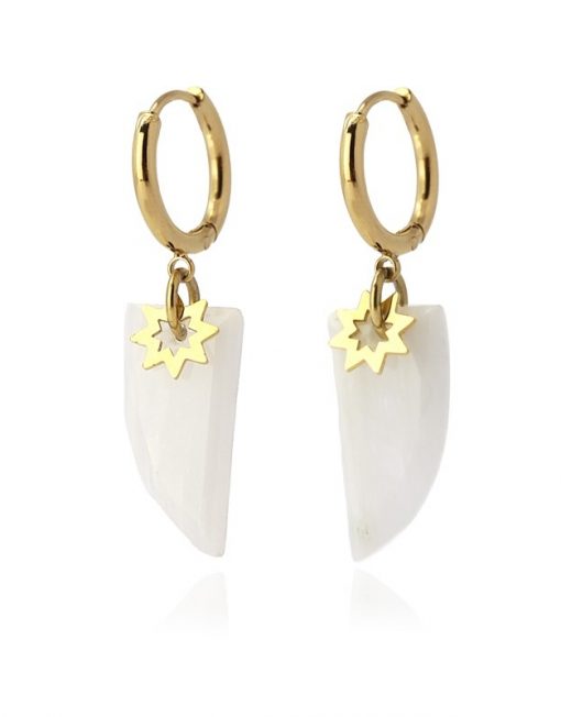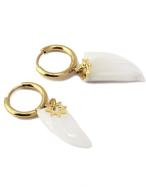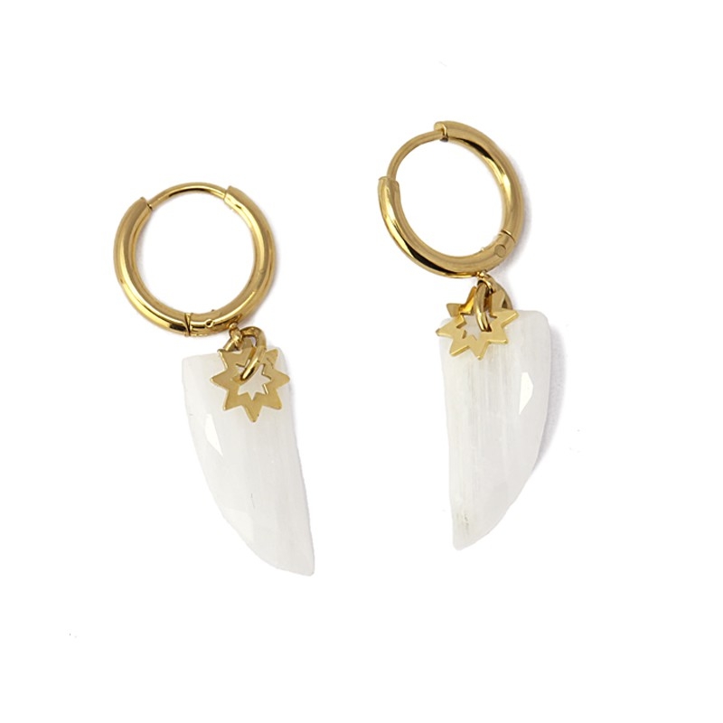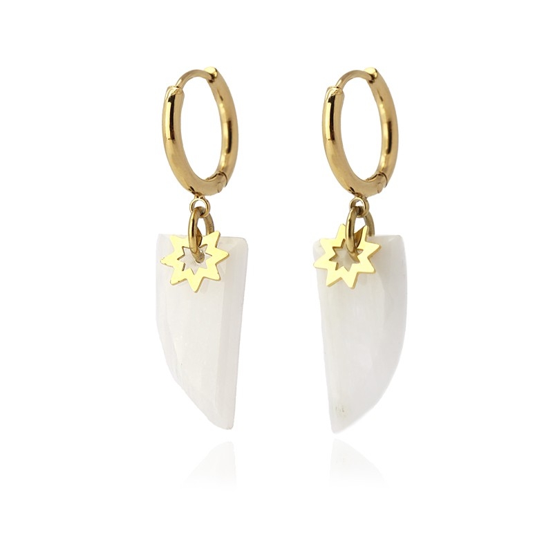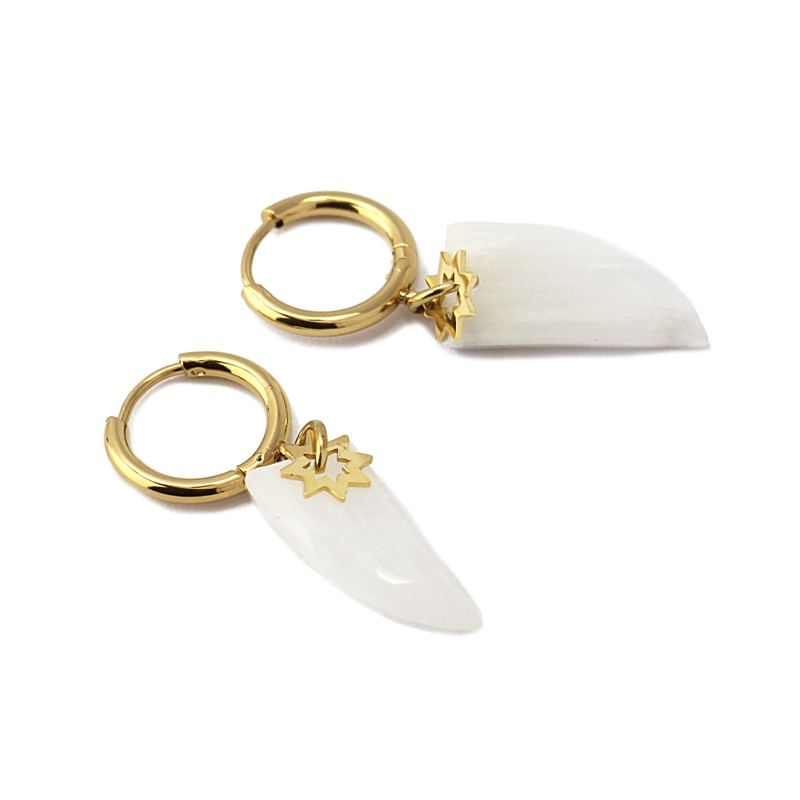 Pequeños aretes con colgante en forma de cuerno de piedra natural.