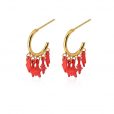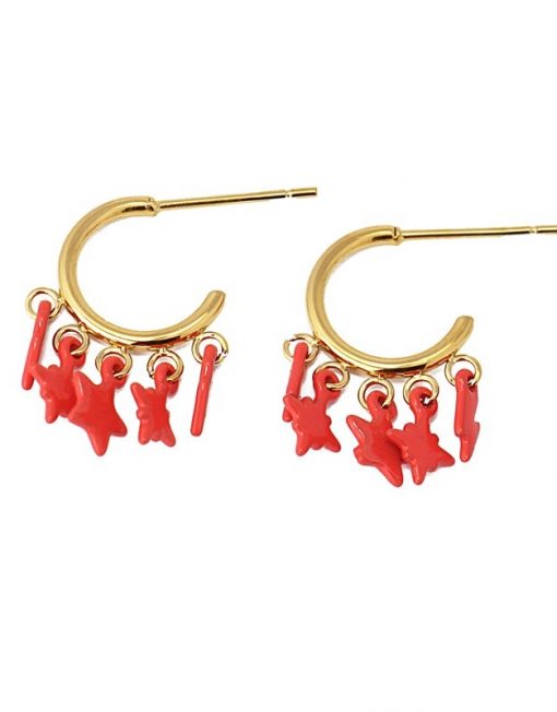 Mini aros con abalorios en forma de estrellas variadas. Lo puedes elegir en color turquesa o coral, con textura pintado con spray. De acero quirúrgico con baño de oro, son pendientes para mujeres con personalidad. Son ligeros, cómodos, no oxidan, son resistentes al agua y no producen alergia. Cierre a presión tipo mariposa. Miden 12 mm de diámetro. ¿Te los compras?