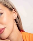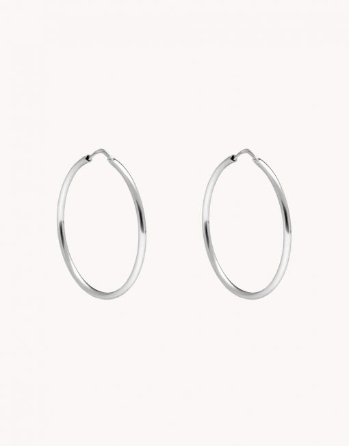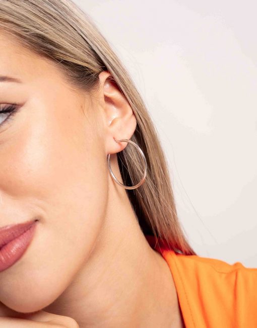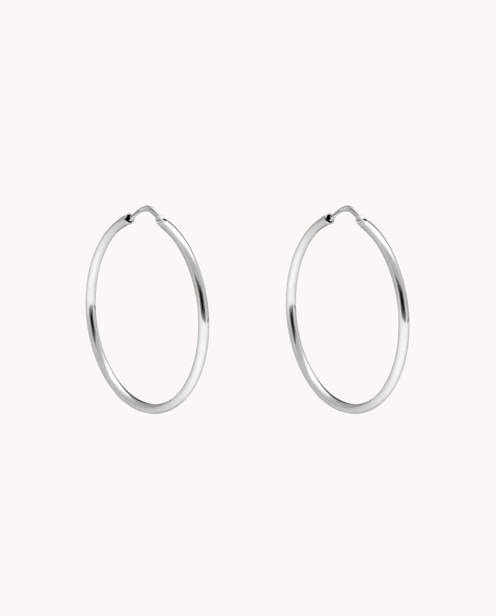 Pendientes de aro de plata de ley 925 bañados en rodio de 25 mm de diámetro interior y 2 mm de ancho, cierre africano.