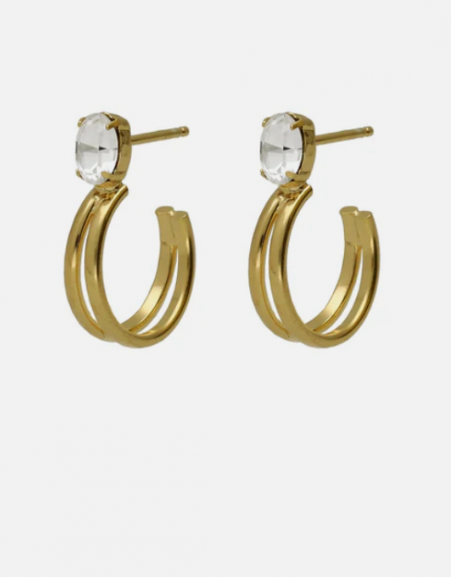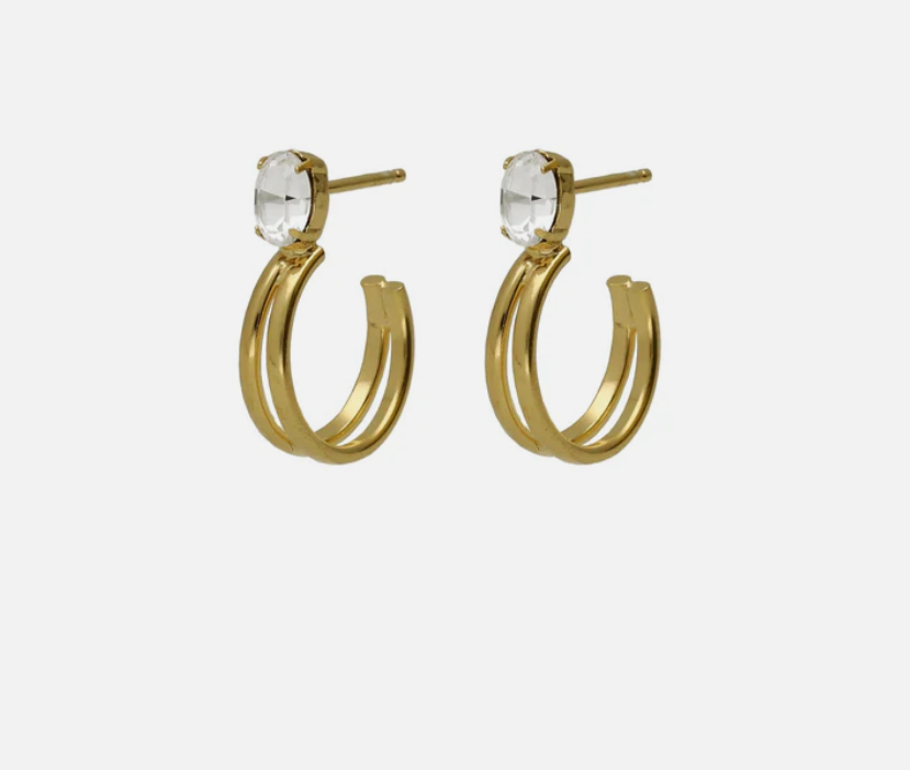 Pendientes aro con cristal y plata de ley bañados en Oro de 18kt. Tamaño del motivo de 2cm x 0,4cm, diámetro de: 1,5cm con cierre tuerca a presión de la colección Buenos Días