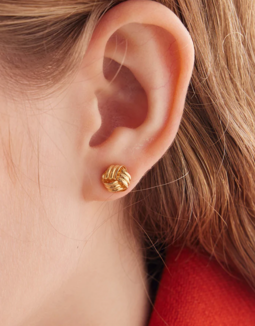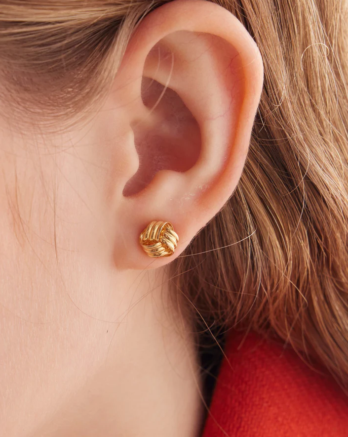 Pendientes botón de Plata de Ley. Tamaño del motivo de 0,8cm en forma de nudo con cierre tuerca a presión de la colección Nivola