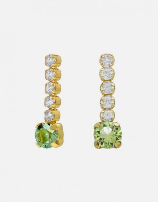 Pendientes cortos de cristal y Plata de Ley bañada en Oro de 18kt. Tamaño del motivo de 1,6×0,4cm diámetro aro: 2,5cm con forma de cascada de la colección Shine