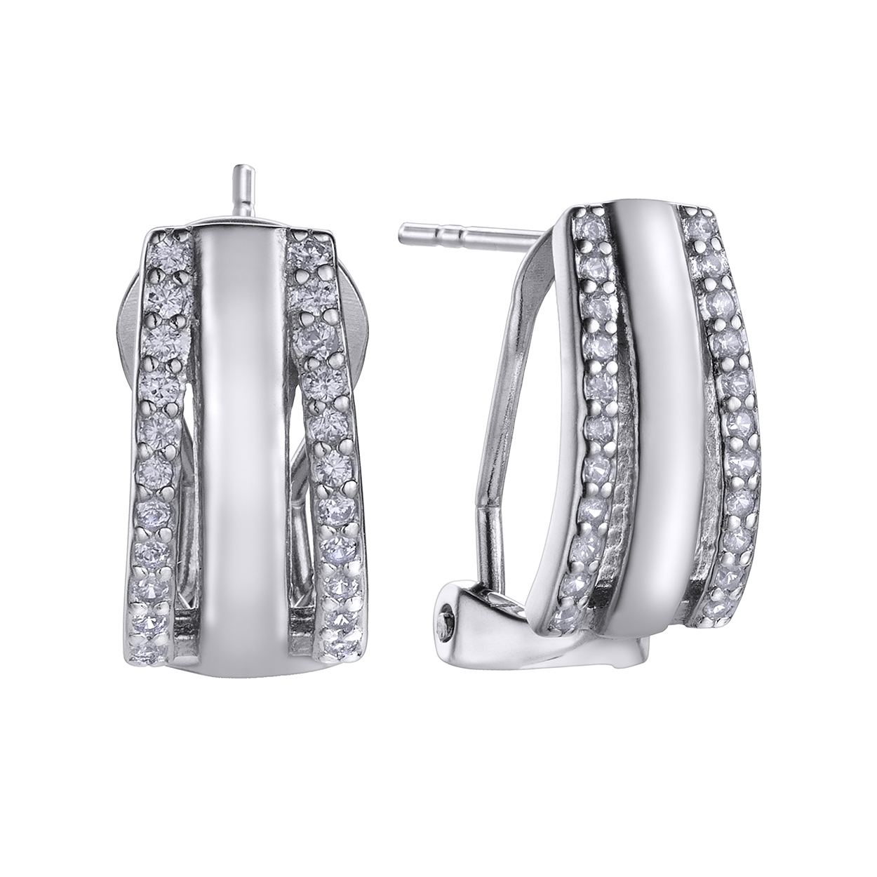 Acabado: rodio Color: Plata Tipo de presión: omega Medidas: 0,8 x 1,3 x 1,5 cm circonitas
