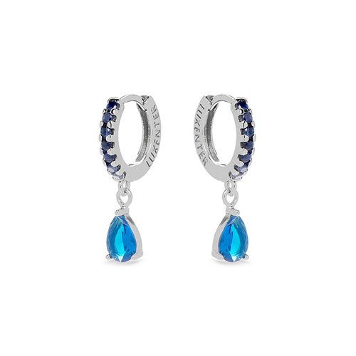 PENDIENTES INTHEON Piedras:CIRCONITA ZAFIRO AcabadoBAÑO DE RODIO Medidas:alto: 4.300, largo: 20.100 Peso:1.90 gr. Cierre:ARO HUGGIE Engaste:GRANO Tarjeta de colección:OPTIMISMO Material:PLATA DE LEY 925