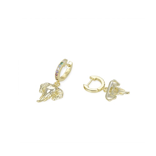 PENDIENTES LAITAK Piedras:CIRCONITA MULTICOLOR AcabadoBAÑO DE ORO AMARILLO DE 18 QUILATES Peso:1.95 gr. Cierre:ARO HUGGIE Engaste:GRANO Tarjeta de colección:OPTIMISMO Material:PLATA DE LEY 925