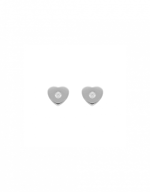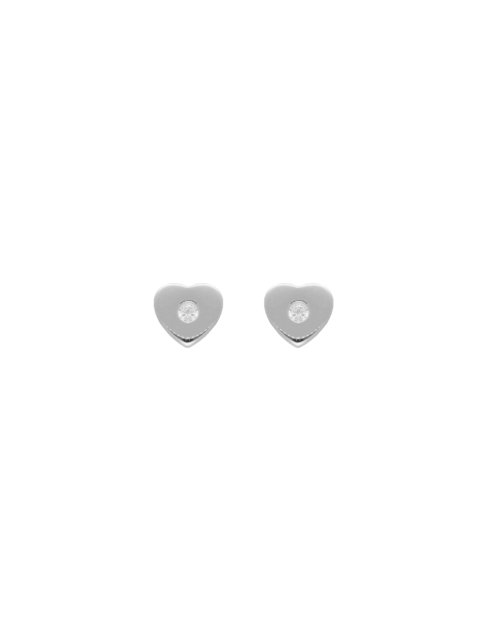 Pendientes de plata de ley 925 bañada en rodio con forma de corazón y circonita central blanca, cierre de presión.