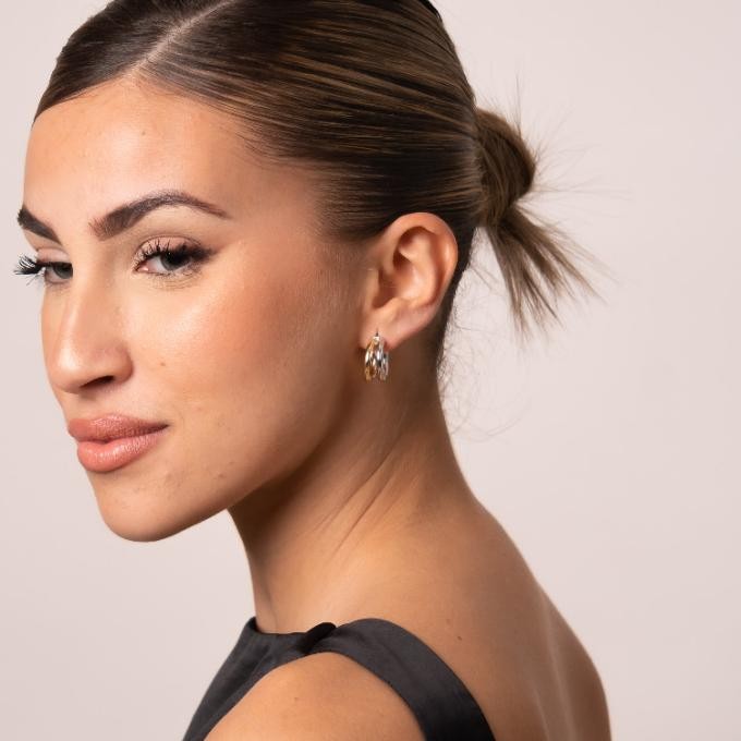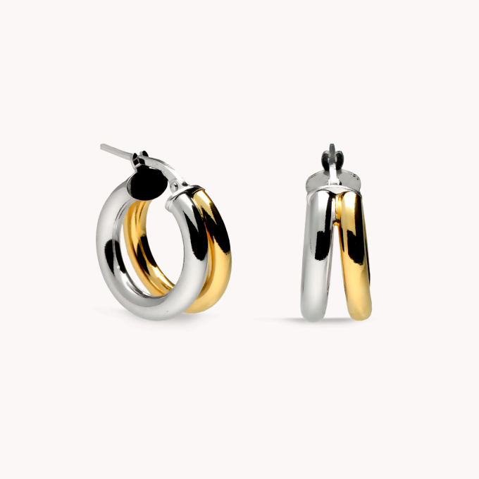 Pendientes de aro de plata de ley 925 bañada en rodio y oro de 18k de 13 mm de diámetro interior y 3 mm de grosor, cierre catalán.