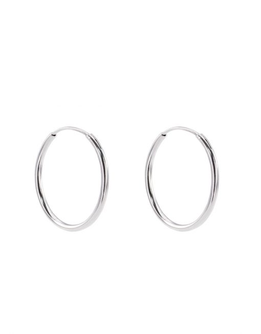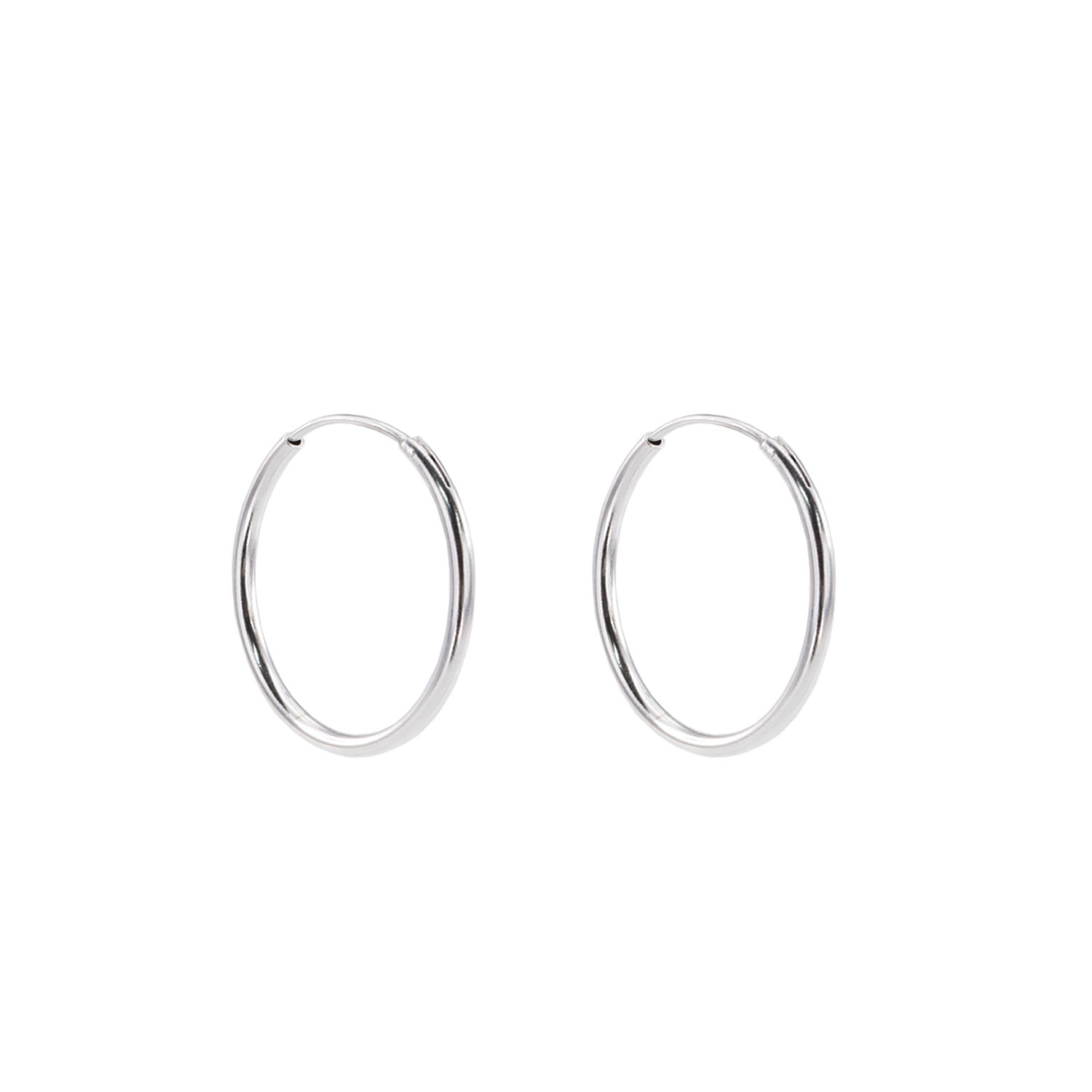 Pendientes de aro de plata de ley 925, bañados en rodio y cierre africano. 18 mm de diámetro interior y 1,5 mm de ancho.