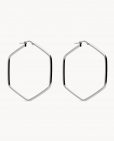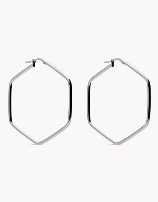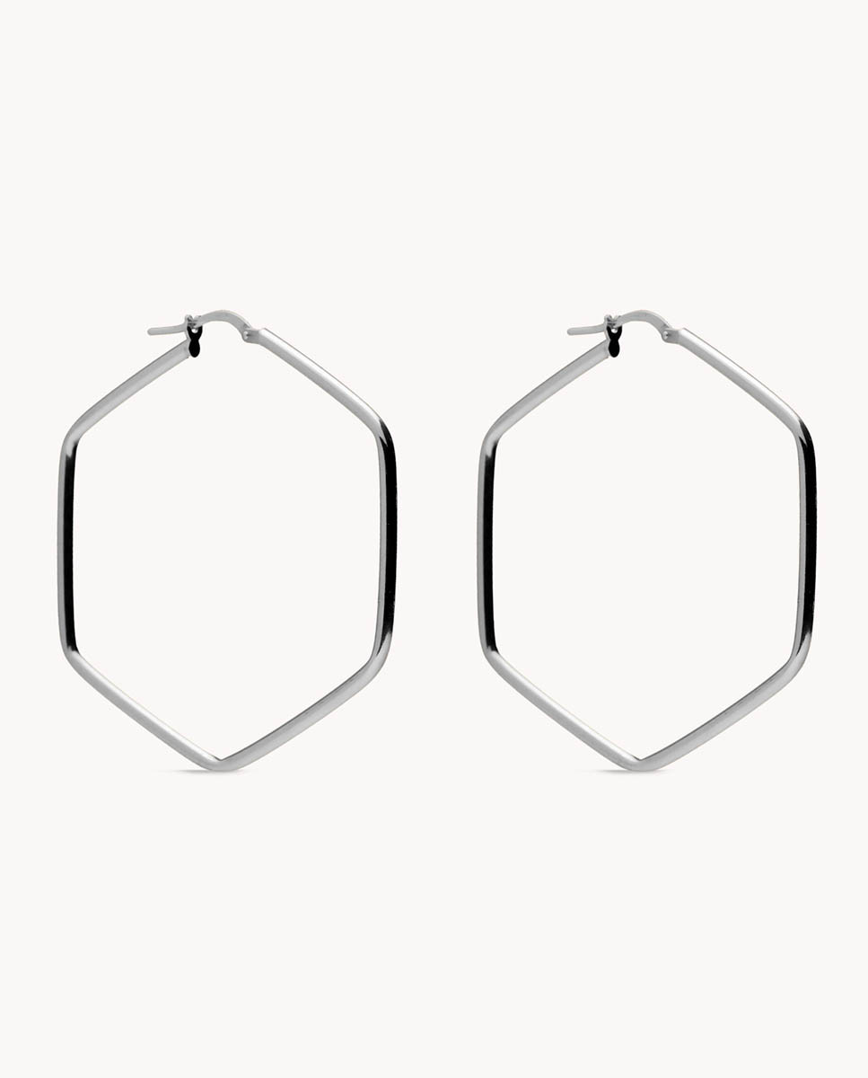 Pendientes de aro de plata de ley 925 bañada en rodio con forma hexagonal de 42 mm x 45 mm (ancho por alto) y 1 mm de grosor, cierre catalán.
