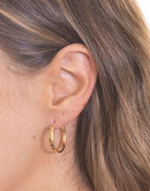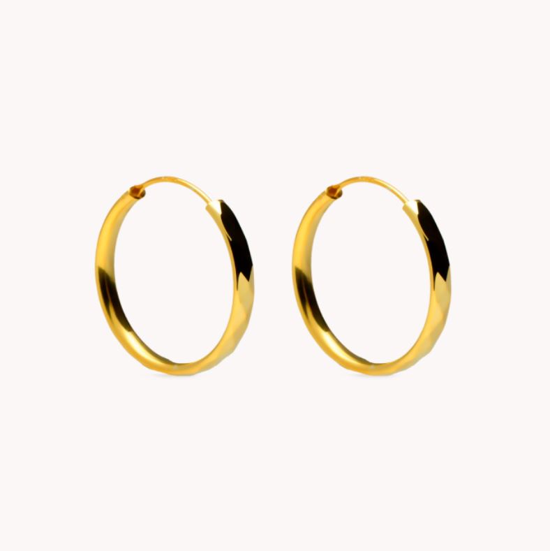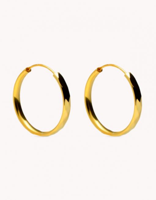 Pendientes de aro de plata de ley 925 bañados en oro de 20 mm de diámetro interior y 3 mm de ancho , con diseño de rombos y cierre africano.
