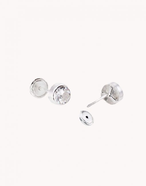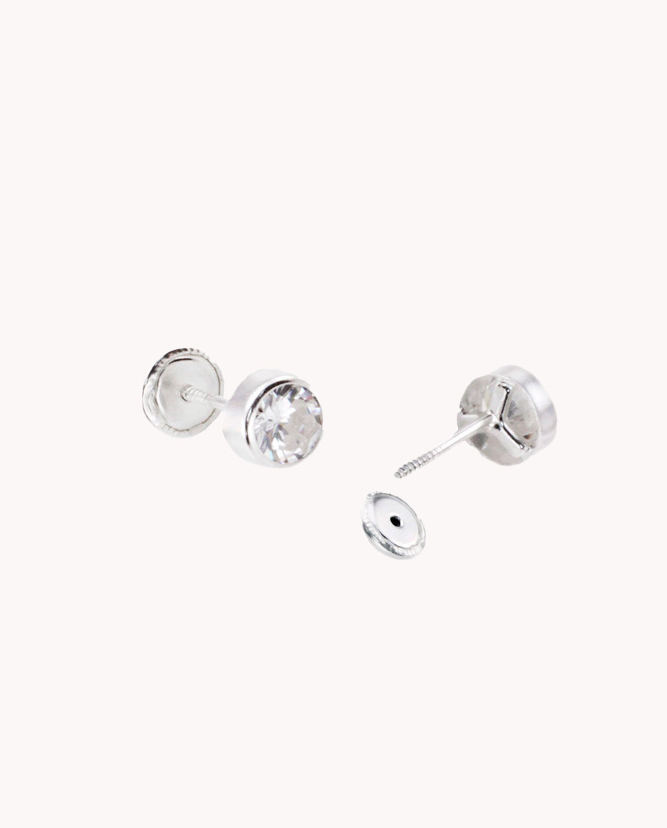Pendientes de plata de ley 925 con chatón de circonita blanca de 4 mm de diámetro y cierre de rosca.