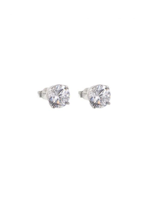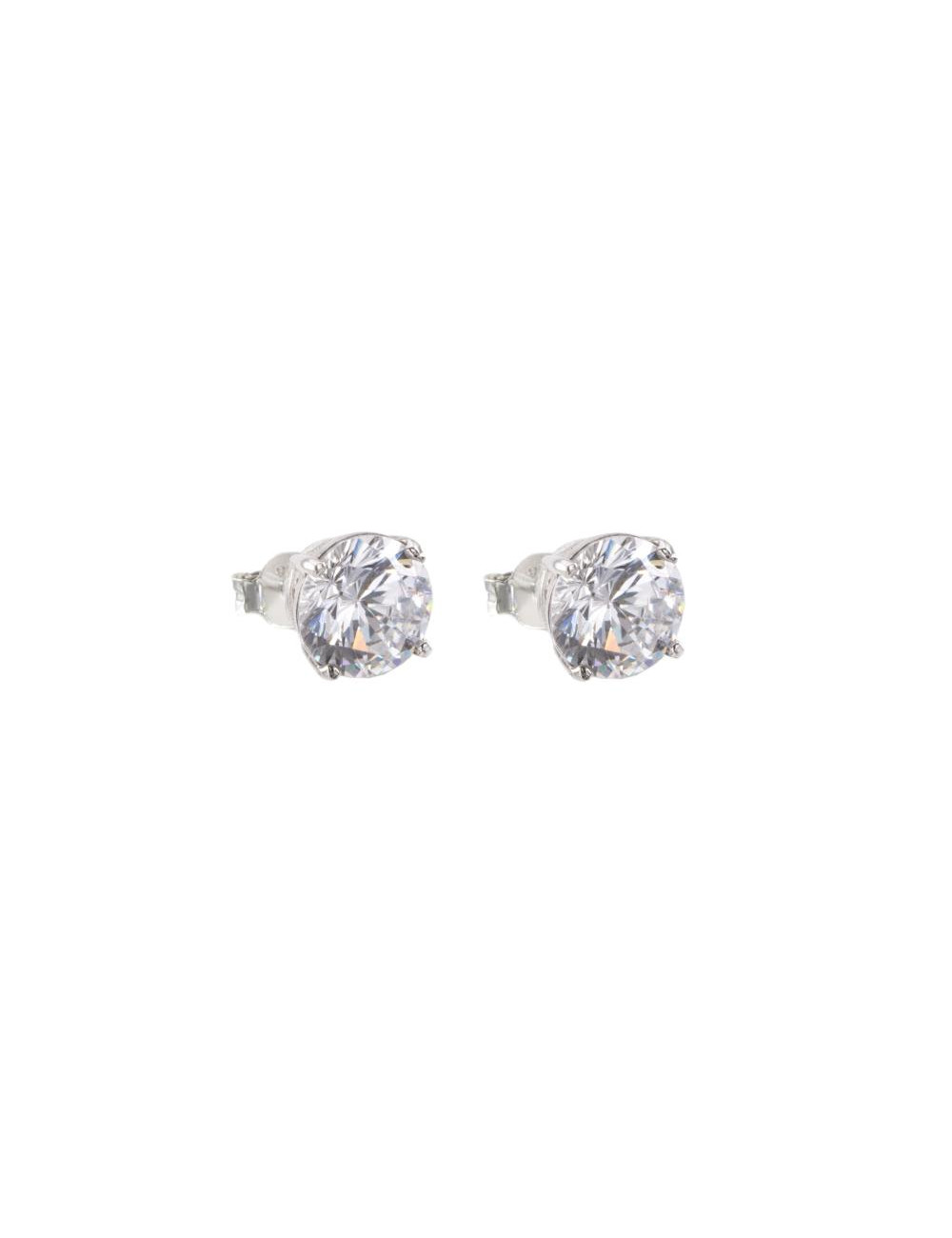 Pendientes de plata de ley 925 bañados en rodio con circonita blanca redonda de 6 mm engastado con 4 garras.