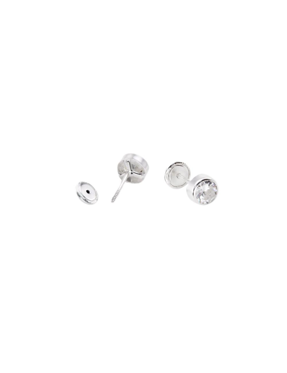 Pendientes de plata de ley 925 con chatón de circonita blanca de 5 mm de diámetro y cierre de rosca.