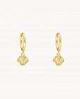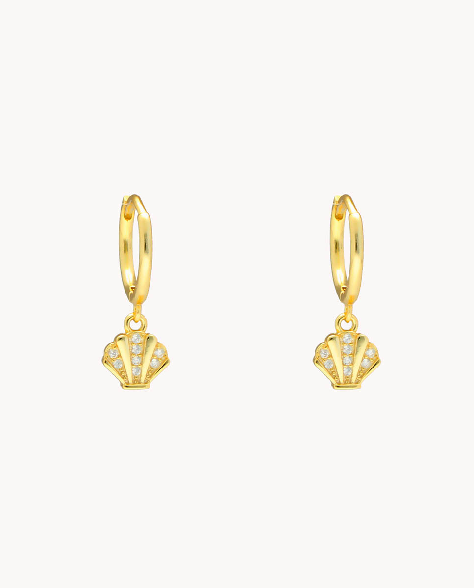 Pendientes de aro de plata de ley 925 bañada en oro de 9 mm de diámetro interior y 1,5 mm de ancho, colgante de concha con circonitas blancas y cierre africano.