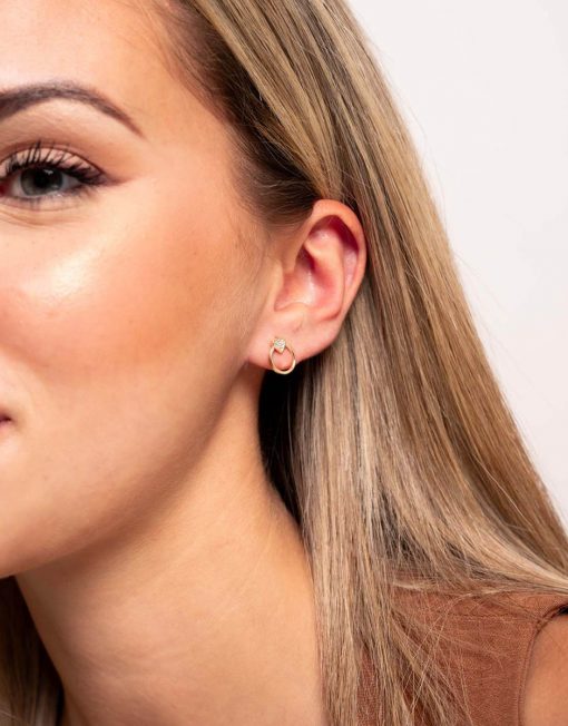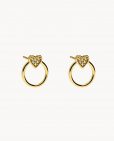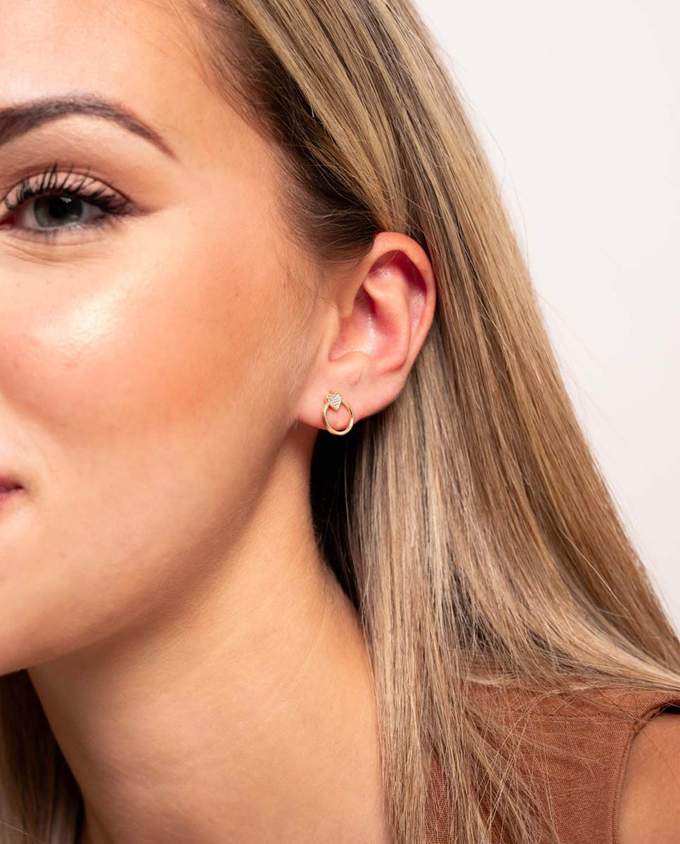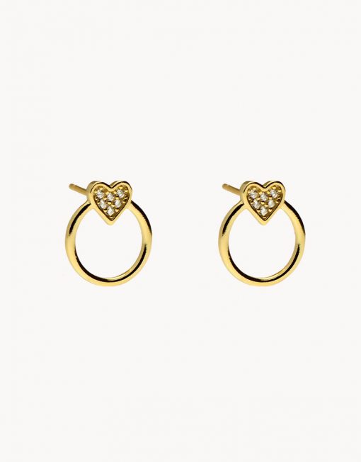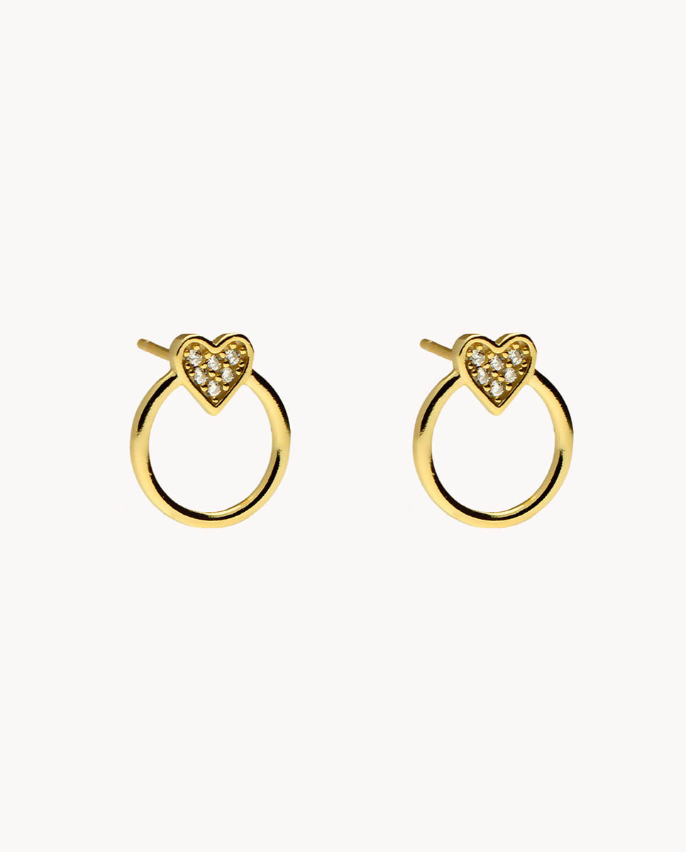Pendientes de plata de ley 925 bañada en oro 18K con forma de karma de 10 mm de diámetro y corazón de circonitas blancas, cierre de presión.
