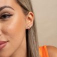 Pendientes de aro de plata de ley 925 bañados en oro de 12 mm de diámetro interior con eslabones y circonita central de 4 mm de diámetro, cierre catalán.