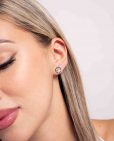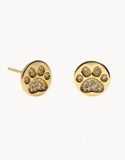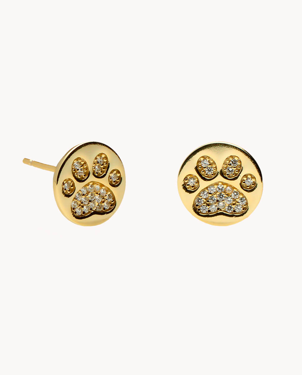 Pendientes de plata de ley 925 bañados en oro motivo huella de perro con interior de circonitas blancas de 9,5 mm de diámetro, cierre de presión.