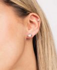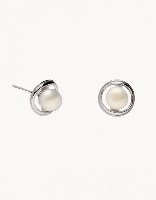 Pendientes de plata de ley 925 bañada en rodio con perla cultivada de 6 mm de diámetro y cierre de presión.