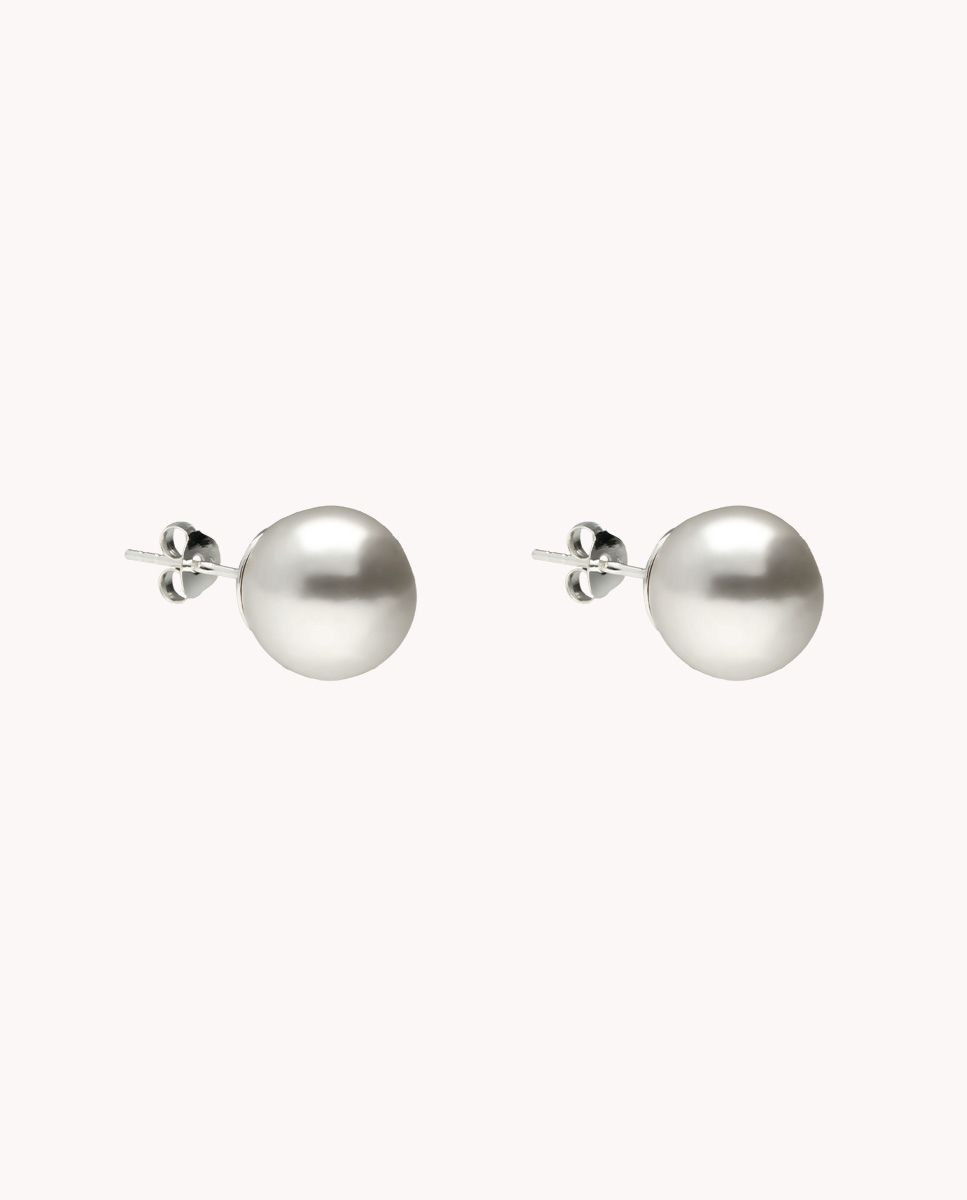 Pendientes de plata de ley 925 con perla de 10 mm de diámetro y cierre de presión.